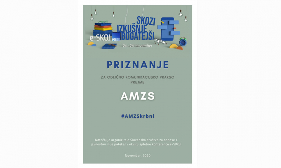 Slovensko društvo za odnose z javnostmi se je zato odločilo nagraditi tiste, ki so se v novi realnosti še posebej izkazali. Med vsemi prijavljenimi primeri dobrih praks komuniciranja v času covid-19 je bil primer AMZS izbran kot tretji najboljši ter si prislužil posebno nagrado za komuniciranje v času spopadanja s covid-19.