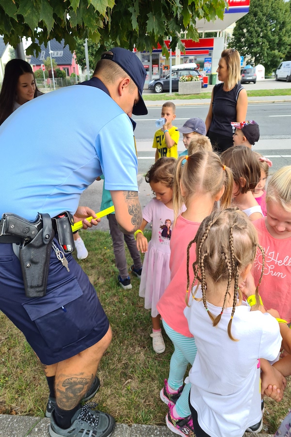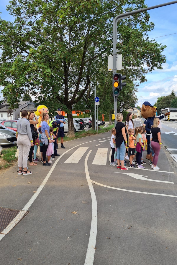 AMZS super junakoma Anji in Marku se je danes v Celju pridružila tudi policijska maskota Pika, izkušeni prometni policist mag. Elvis Alojzij Herbaj, vodja Oddelka za cestni promet na PU Celje, pa je z otroki iz Vrtca Anice Černejeve predstavil, kako pravilno prečkati prehod za pešce, kako se moramo obnašati v prometu in otrokom podal dragocene nasvete za varne šolske in vrtčevske poti. Glede prvega šolskega dne pa pravi, da imajo policisti zelo jasen, preprost in razumljiv nasvet za vse voznike, motoriste, kolesarje in pešce: “V prometu ravnaj tako, kot želiš, da drugi ravnajo do tebe!” Herbaj pravi, da gre za zelo učinkovito načelo zaupanja: “Če sami spoštujete prometna pravila, če ste odgovorni, smete pričakovati in verjeti, da bodo tudi ostali udeleženci ravnali enako. Dokler pa sami ne spoštujete pravil, ne morete pričakovati, da bo nekdo drug, četudi vedno spoštuje pravila, uspel preprečiti nesrečo.”