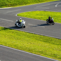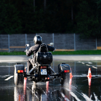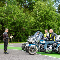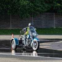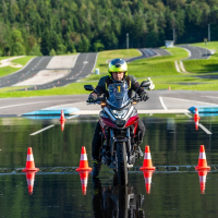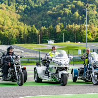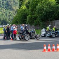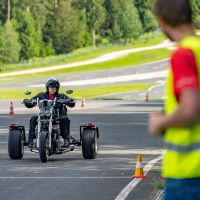 Na trike motornih kolesih, t. i. trikolesnikih, so pod budnim očesom AMZS inštruktorja Vojka Safrana trenirali obvladovanje vozil in se preizkusili v kritičnih situacijah, ki bi se lahko pripetile tudi na cesti. Trening je bil prilagojen značilnostim motorjev, praktične vaje na poligonu so potekale tako na asfaltnih površinah kot drseči podlagi.