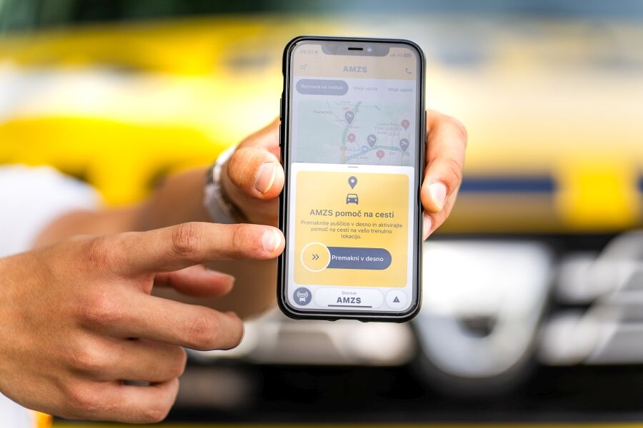 - dodatno pa lahko – če je član pomoč na cesti aktiviral s pomočjo SOS gumba v AMZS aplikaciji –, v tej tudi spremlja pot intervencijskega vozila AMZS mehanika za pomoč na cesti oziroma pooblaščenega AMZS izvajalca;
