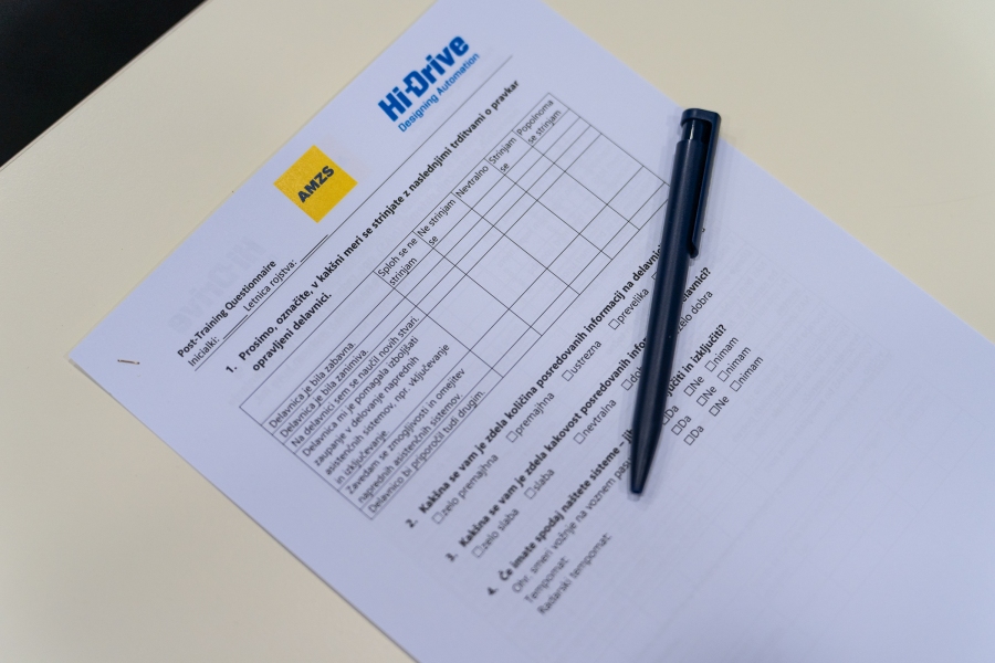 Udeleženci so morali izpolniti tudi dva vprašalnika – enega pred, drugega pa po delavnici. Analiza obeh bo pokazala, kakšno je poznavanje, dojemanje, razumevanje in uporaba naprednih asistenčnih sistemov pred oziroma po usposabljanju.
