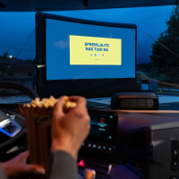 Vrhunec petkovega večera je bila drive-in kino projekcija legendarne fantazijske komedije Minecraft, ki jo je AMZS pripravil v sodelovanju s Kinom Bežigrad. Srečni nagrajenci AMZS nagradne igre so si lahko film ogledali iz udobja svojega avtomobila. Za piko na i so poskrbele brezplačne kokice, ki so jih prejeli vsi obiskovalci, člani AMZS pa celo dvojne.