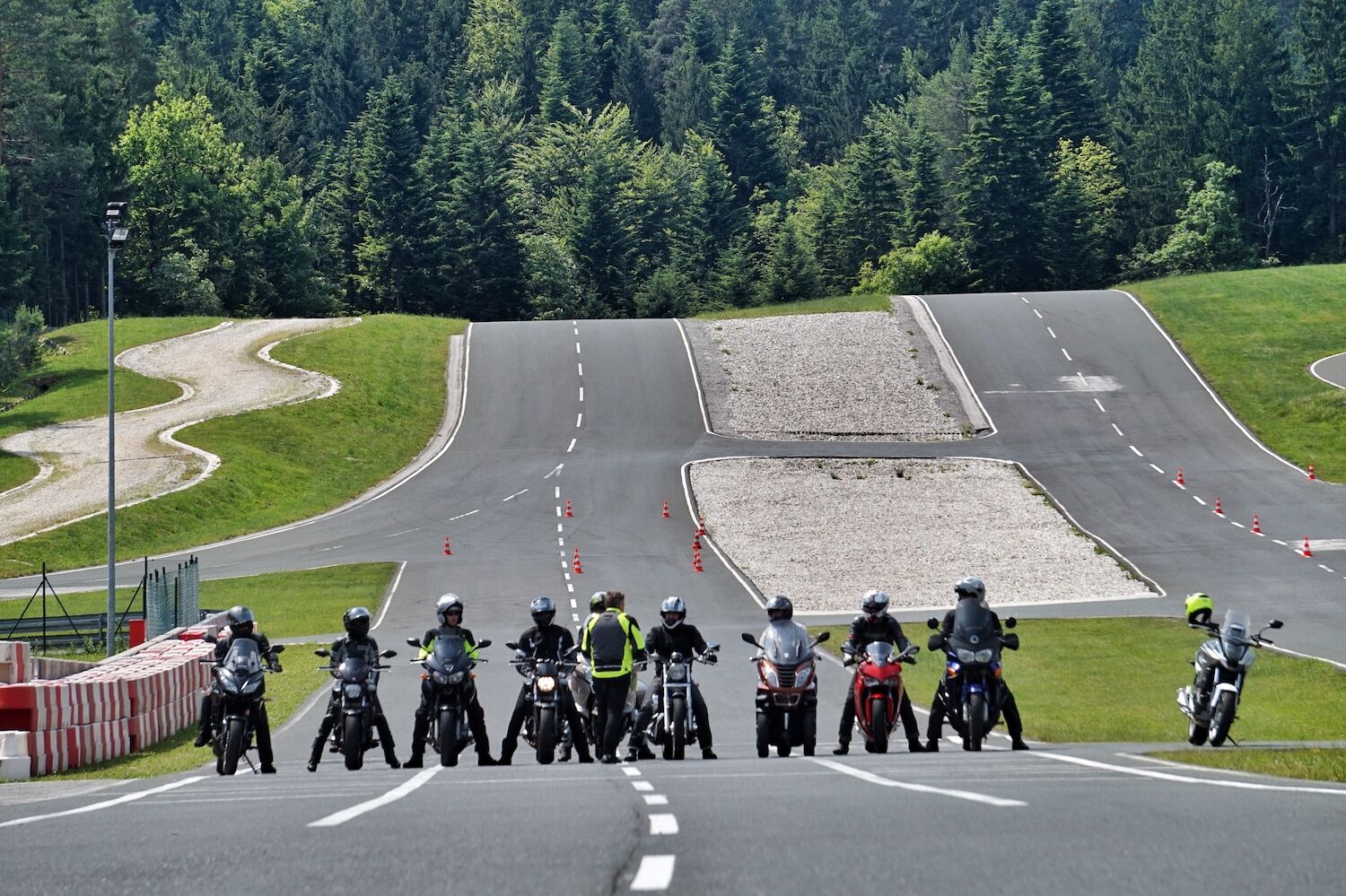 - upravljanje nagiba in ravnotežja: motoristi se naučijo nadzirati motor skozi nagibe, kar je bistveno za varno zavijanje;