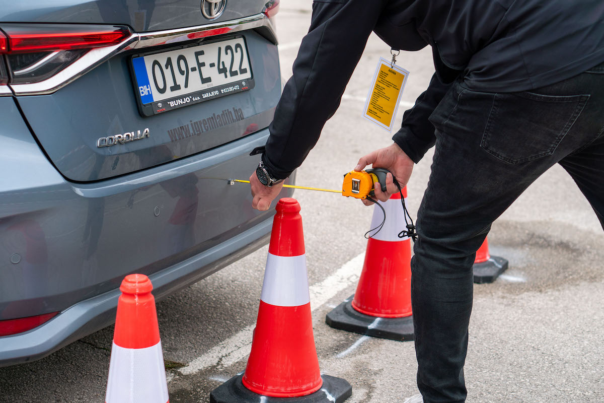 - parkiranje: meri se čas, h kateremu se doda po pet sekund za vsak dotik stožca, ter po eno sekundo za vsak centimeter odmika pri parkiranju (bočno parkiranje prednja in zadnja guma, vzvratno parkiranje, parkiranje naravnost in parkiranje v sredino boksa)