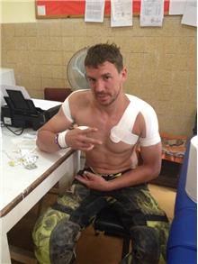 Naš tekmovalec je včerajšnjo etapo, ki je naredila zanko okrog Uyunija, sicer končal, vendar ne v najbolj uspešno. Dvajset kilometrov pred ciljem je imel bližnje srečanje z avtomobilom. Padec je bil tokrat silovitejši od padca prejšnjega dne, in ko je popustil adrenalin, je bolečina postala nevzdržna.