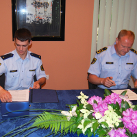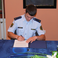 Pred tem podpisom je bil na vrsti podpis med generalnim direktorjem policije Marjanom Fankom in vrhunskim športnikom motokrosistom Timom Gajserjem, ki je pogodbo o zaposlitvi v Policiji podpisal prvič.