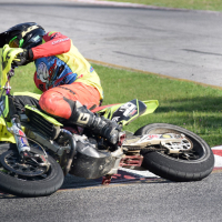 Že na sobotnih prostih treningih je imel naš voznik Erik Gregorič pri zadnjem treningu smolo, saj je pri izhodu iz zavoja zadel voznika, ki je neprevidno zamenjal linijo vožnje. Posledica je bil padec in poškodba kolena, ki je vplivala tudi na dogajanje v nedeljo.
