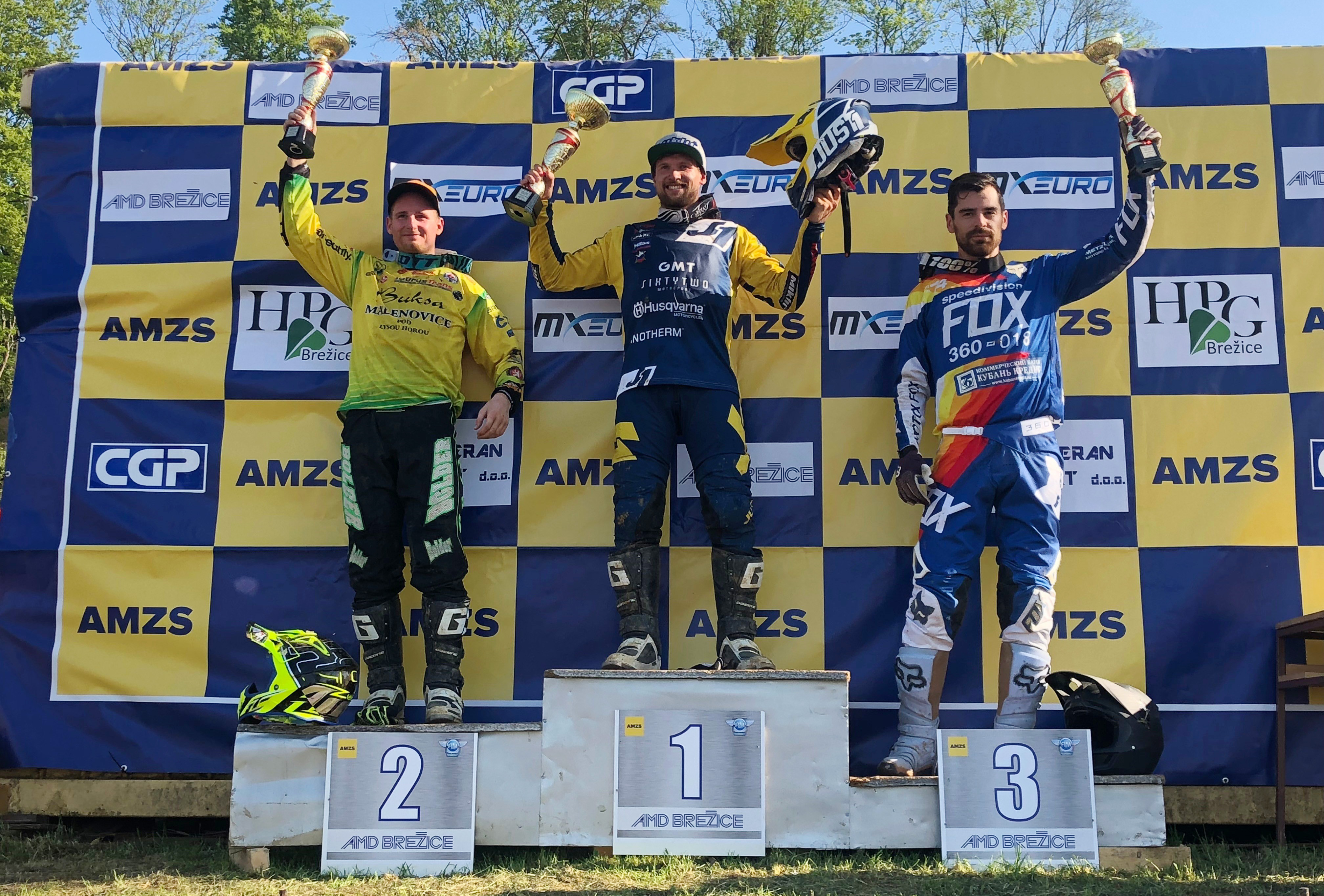 Nedelja je postregla z zelo atraktivnimi vožnjami, v katerih so bili na veselje navijačev in organizatorja v ospredju tudi slovenski tekmovalci. V odprti kategoriji EMX open je dominiral predstavnik domačega društva AMD Brežice Klemen Gerčar, ki je v obeh vožnjah pometel s konkurenco. Drugi je bil češki tekmovalec Martin Michek, s katerim se je Gerčar v drugi vožnji boril vse do cilja. Michek je povedel po startu, Gerčar pa ga je za tem prehitel. Ustvaril je nekaj metrov prednosti, vendar Michek ni popuščal in se je Gerčarju dva kroga pred koncem dirke povsem približal. Sledila je izjemna končnica dirke. Gerčar je uspel zadržati vodstvo in je postal skupni zmagovalec dirke. Zmagovalcu Gerčarju in drugo uvrščenemu Micheku se je na tretji stopnici pridružil ruski motokrosist Evgeny Mikhaylov. Gerčar tako po prvi dirki evropskega prvenstva vodi tudi v skupnem seštevku prvenstva.