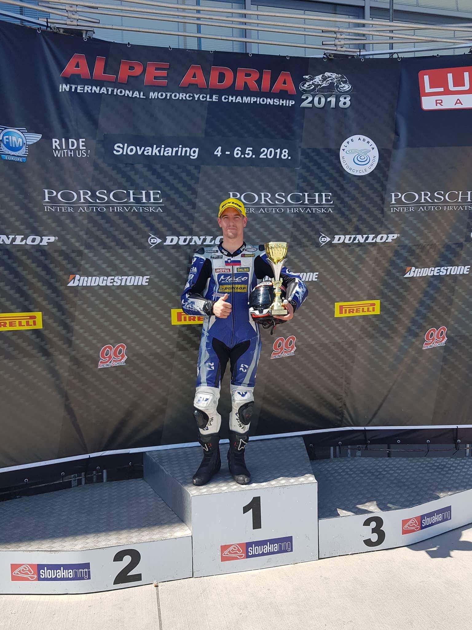 Trenutno najuspešnejši slovenski motociklist Marko Jerman (MD Depala vas) je tekmoval v prvenstvu Alpe Adria, v kategoriji Superstock 1000 in dosegel polovičen uspeh. Sobotno dirko je zaključil že kmalu po startu, saj je padel in odstopil. K sreči se pri tem ni huje poškodoval in v nedeljo je bil na startu druge dirke, ki jo je zaključil na odličnem tretjem mestu. Zmagal je češki motociklist Michal Filla.