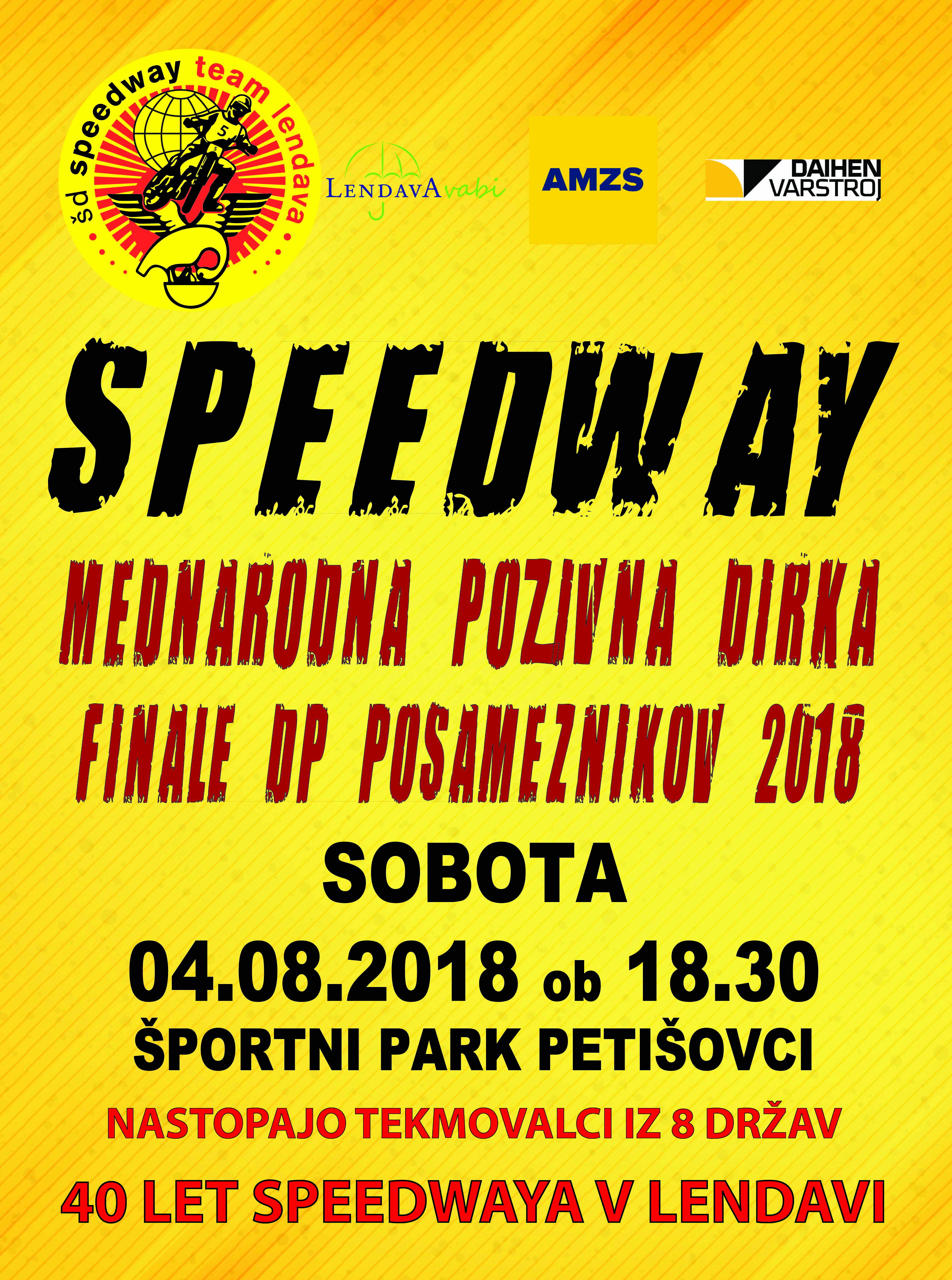 To soboto bo Rekreacijski park Petišovci pri Lendavi gostil tretjo, finalno dirko letošnjega državnega prvenstva posameznikov v speedwayu. Obvezni trening bodo tekmovalci, ki bodo prišli iz kar osmih držav, opravili med 15. in 16. uro, uradni začetek tekmovanja pa bo ob 18.30. Na njej bo kot glavni favorit seveda nastopil naš najboljši speedwayist Matej Žagar, ki je po dveh letošnjih zmagah ponovno, še sedemnajstič zapored, nesporni kandidat za nov naslov državnega prvaka.
