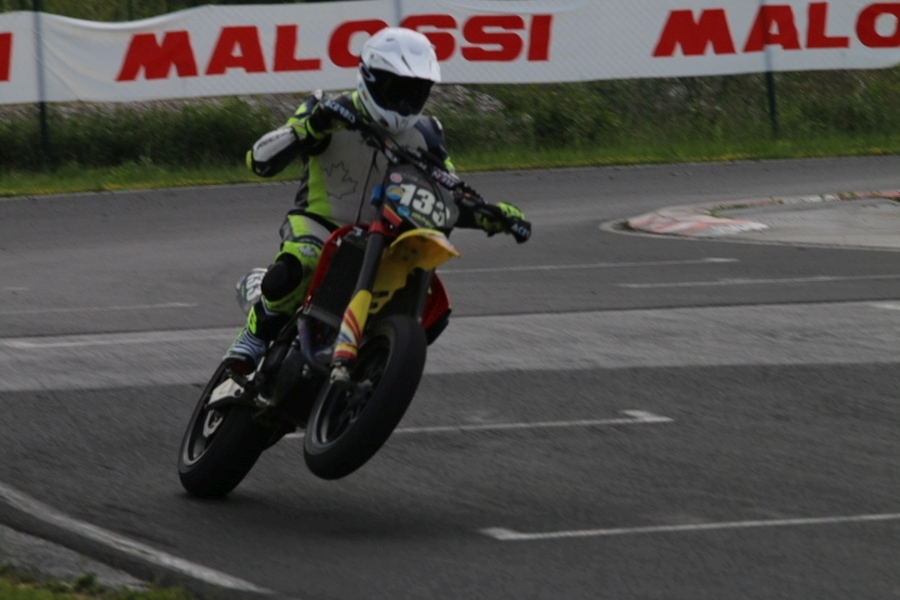 Prvo vožnjo kategorije supermoto je zaznamoval naliv, zato je bila dirka prekinjena. Vozniki so v premoru na svoje motorje namestili gume za dež, ki pa jim niso dosti pomagale, saj se je proga po nalivu zelo hitro sušila. Prva vožnja je bila tako sestavljena iz dveh delov, v obeh pa je bil najhitrejši Edy Rupelly, ki se mu je najbolj približal italijanski tekmovalec Michael Bortolotti, tretje mesto pa je, čeprav je moral dirko pričeti iz boksov, osvojil Jan Zorko. V drugi vožnji je bil prav Zorko tisti, ki je osvojil drugo mesto, Rupelly je bil nepremagljiv, Bortolotti pa je v cilj zapeljal kot tretji. Tak je bil tudi končni vrstni red seštevka obeh dirk. Po dveh dirkah je v skupnem vodstvu Rupelly.