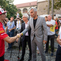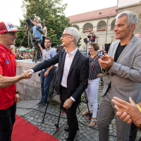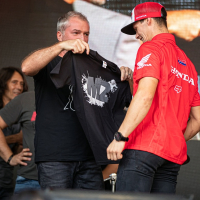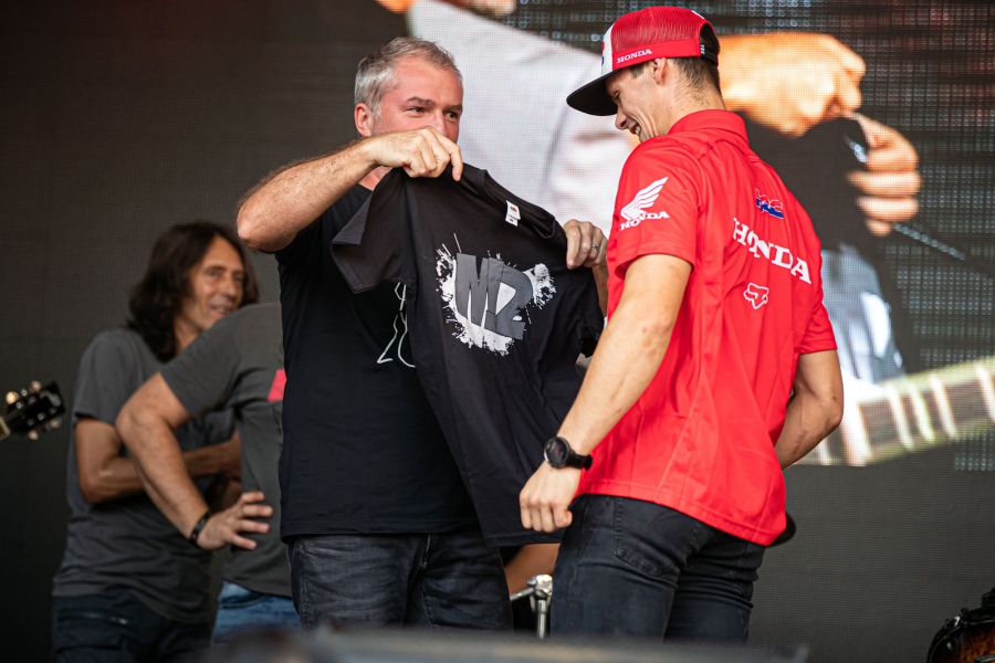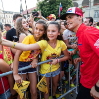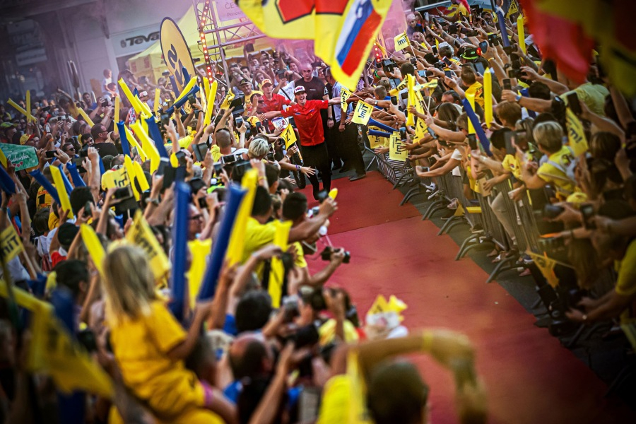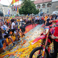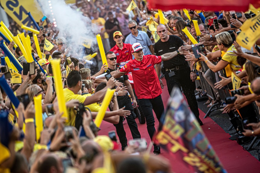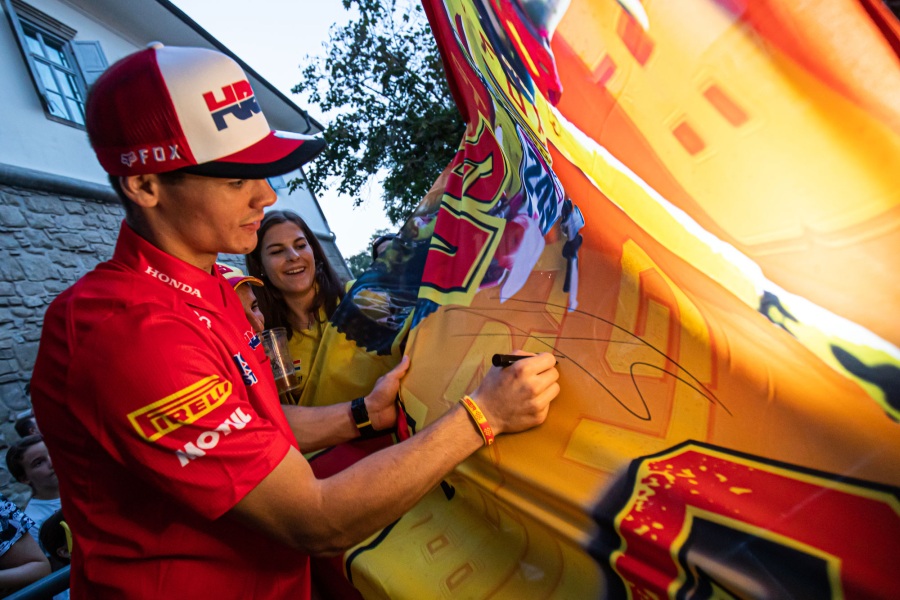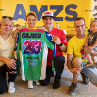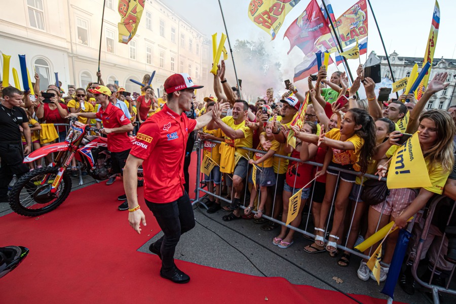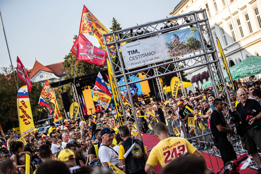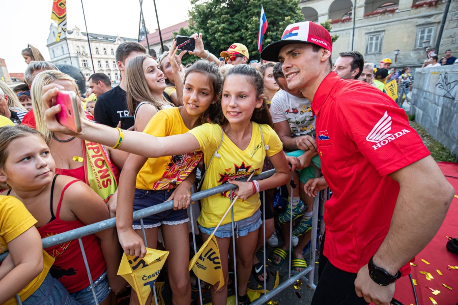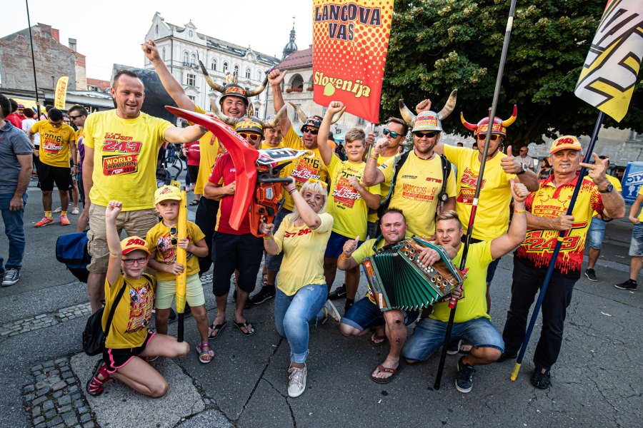 Neverjetna množica oboževalcev je Gajserja na Trgu svobode v Mariboru nekaj časa nestrpno čakala ter si dajala duška ob zanimivem in pestrem programu na prireditvenem odru. Ko pa se je v špalirju motokrosistov in drugih motoristov na prizorišču pojavil svetovni prvak, je eksplodirala od navdušenja. Prireditveni prostor je grmel od glasnih navijačev, ki so si dali duška z vsemi mogočimi navijaškimi rekviziti, med katerimi je bil celo agregat motorne žage. V prešernem vzdušju je bil vidno ganjen tudi naš šampion, ki česa takega ni pričakoval, še manj pa tolikšnega števila navijačev, ki so v značilnih rumeno-rdečih majicah in kapah s številko 243 povsem okupirali mariborski Trg svobode.