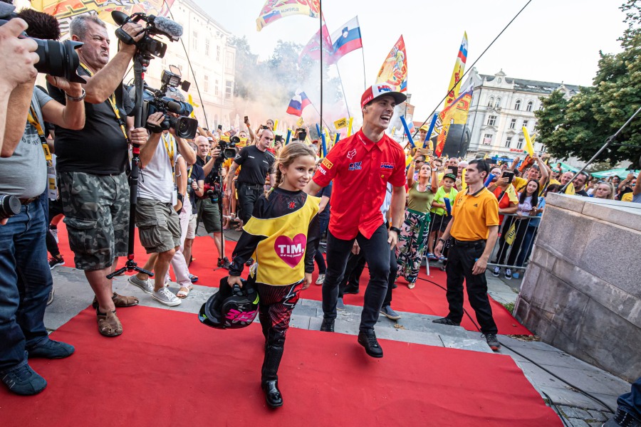 Najboljši slovenski motokrosist in že pred koncem sezone tudi novi svetovni prvak v razredu MXGP Tim Gajser je v Mariboru doživel veličasten sprejem, ki ga je organizirala Avto-moto zveza Slovenije, nacionalna športna zveza za motošport in karting, popestrilo pa ga je tudi več tisoč navijačev.