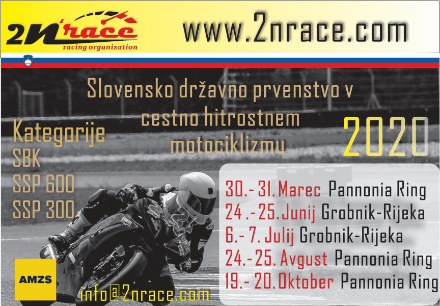 Zvrstilo se bo pet dirk za slovensko državno prvenstvo v cestno hitrostnem dirkanju. Dirke za državno prvenstvo se bodo odvijale na dirkališčih Pannonia-Ring (Madžarska) in Grobnik (Hrvaška). Dirke bodo v treh tekmovalnih razredih: Supersport 300, Supersport 600 in Superbike. To pomeni, da bodo za udeležbo dovolj športni motocikli z nekaterimi manjšimi predelavami, kar bo seveda ugodno vplivalo na stroške, ki jih bodo imeli vozniki.