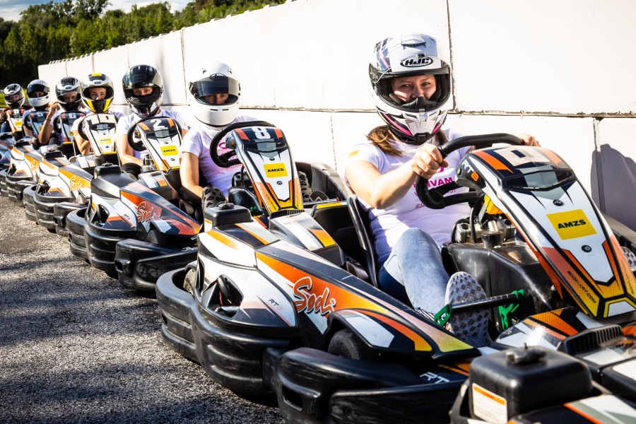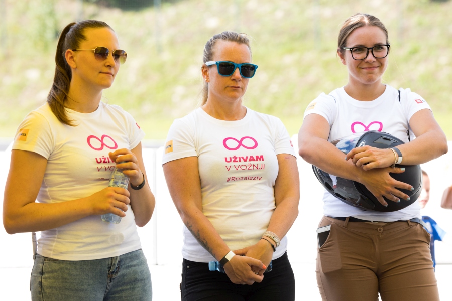 AMZS Center kartinga in moto športa v Slovenji vasi je včeraj na povabilo komisije Ženske v motošportu, ki deluje pod okriljem Strokovnega sveta za avto-moto šport pri Avto-moto zvezi Slovenije, nacionalni športni zvezi za motošport in karting, gostil dame, ki jih navdušujeta vonj po bencinu in adrenalin dirkaške piste. Na družabni karting dirki Roza izziv so se pomerile aktivne tekmovalke v avto-moto športu, nekdanje voznice, pa tudi gospe in gospodične, ki doslej še niso imele prave priložnosti za doživetje dirkaškega vzdušja.