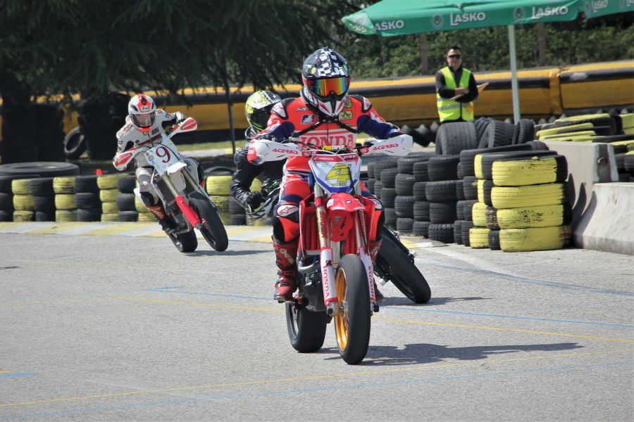 V pokalnem tekmovanju v supermotu je imel pred zadnjo dirko zanesljivo prednost Fabrizio Valenta (Italija). Glavni konkurent Samo Murovec (GAS Vrtejba) je sicer še lahko upal na preobrat, a le v primeru večjih težav Valente. Murovec je bil najhitrejši v kvalifikacijah, pred Valento pa se je prebil tudi Etien Kantar Božič (ŠD Nenaten). A boja za naslov zmagovalca pokalnega tekmovanja je bilo konec že v prvem krogu prve vožnje. V drugem zavoju sta se namreč zapletla prav Valenta in Murovec. Slednji je potreboval kar nekaj časa, da je uspel ponovno zagnati motor in upi o presenečenju so splavali po vodi. Vodstvo v tej vožnji je po tem zapletu prevzel Kantar Božič ter se tudi zanesljivo pripeljal do zmage.