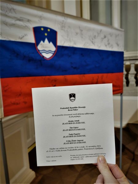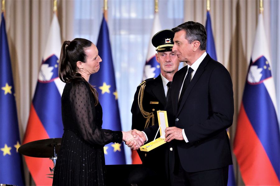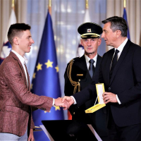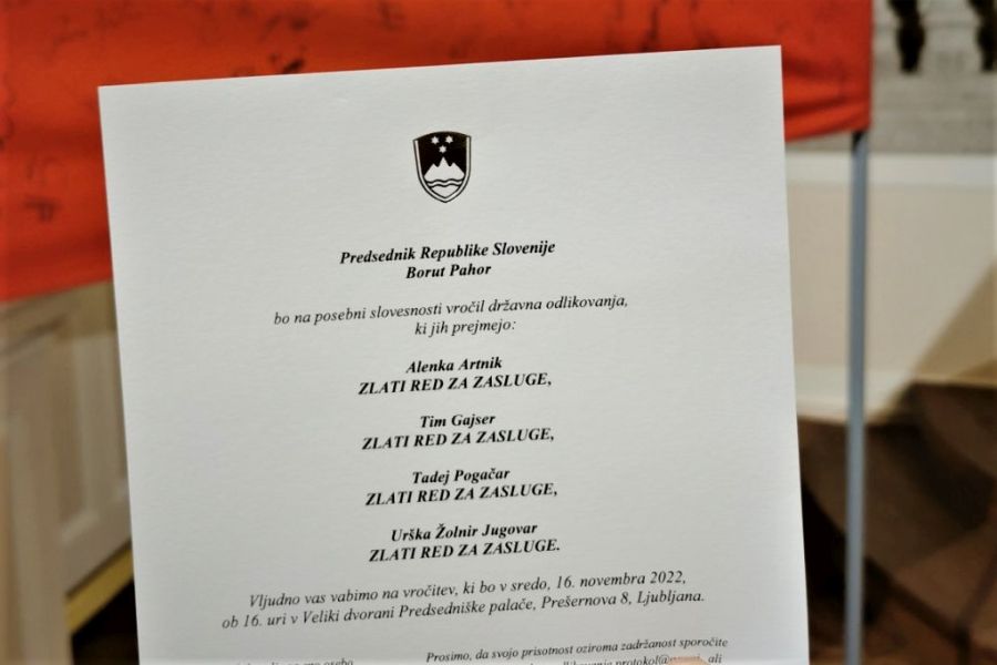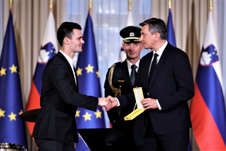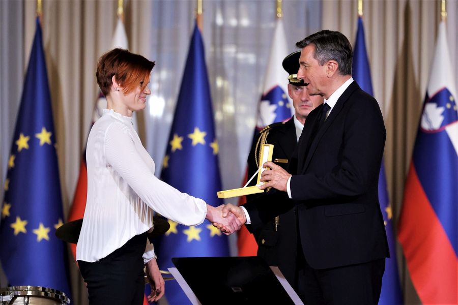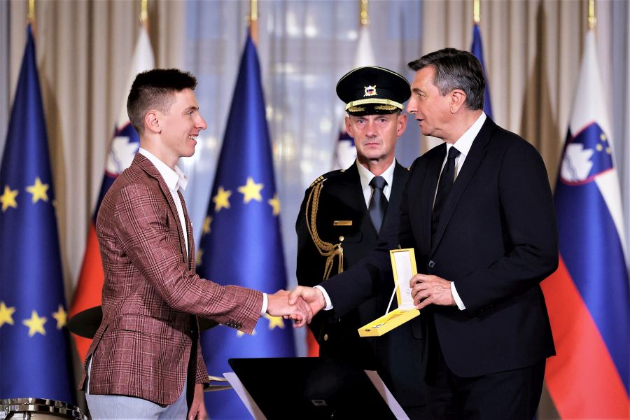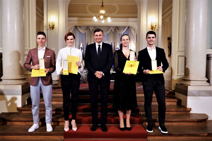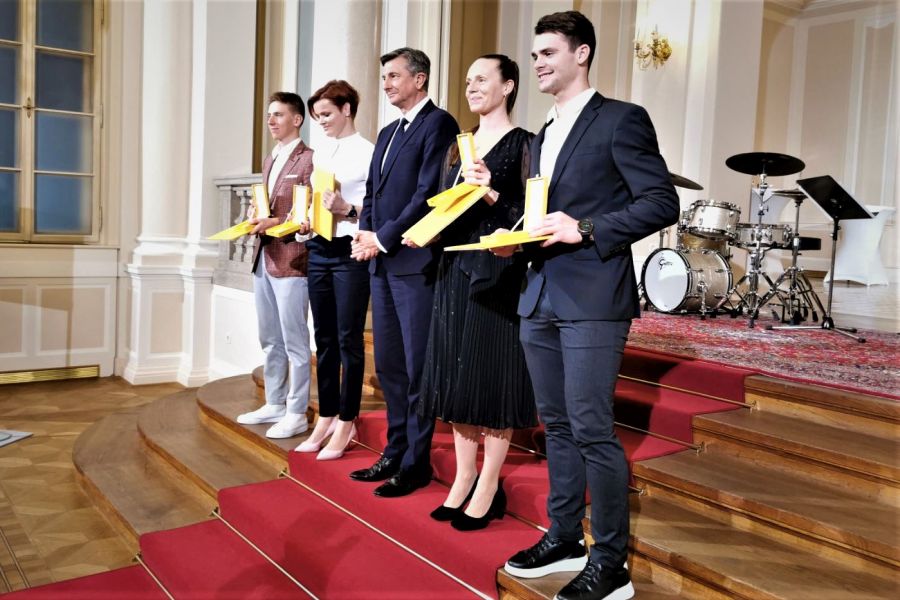 V Predsedniški palači v Ljubljani na Prešernovi 8, v kateri je Urad predsednika Republike Slovenije Boruta Pahorja, je bilo danes zelo slovesno. Na posebni slovesnosti so namreč v Veliki dvorani Predsedniške palače državna odlikovanja, Zlati red za zasluge, prejeli štirje slovenski športniki, in sicer Alenka Artnik, Urška Žolnir Jugovar, Tadej Pogačar in najuspešnejši slovenski motokrosist Tim Gajser.