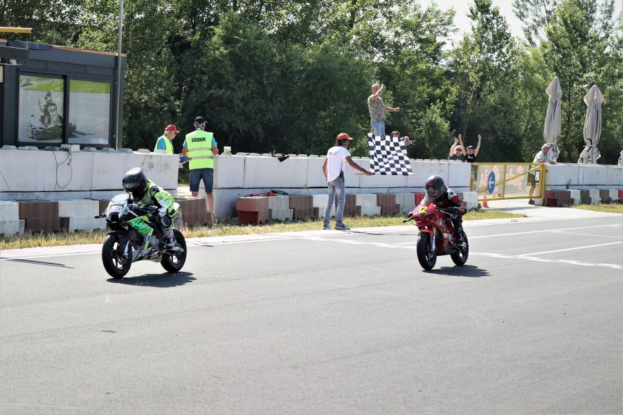 V razredu MiniGP 12 smo v letošnjem državnem prvenstvu na treh dirkah videli tri različne zmagovalce. Enej Krševan (GAS Vrtejba) je sicer vodilni dirkač prvenstva, a v Slovenji vasi višje kot do tretjega mesta ni uspel priti. Na tretji dirki sezone je bil razred zase Tristan Rupelli (GAS Vrtejba), ki je v dvobojih s povratnikom po poškodbi Nejom Habjanom (GAS Vrtejba), uprizoril dih jemajoče vožnje, s številnimi prehitevanji.