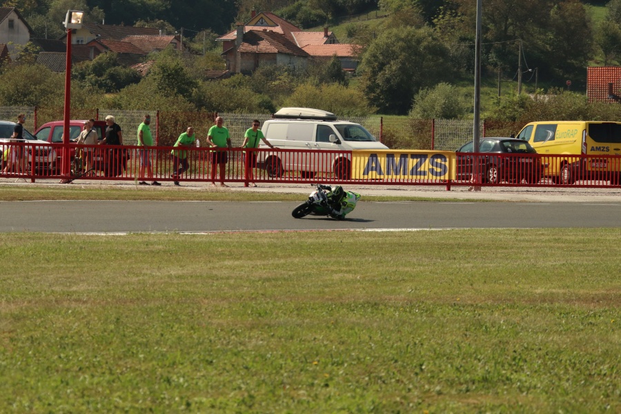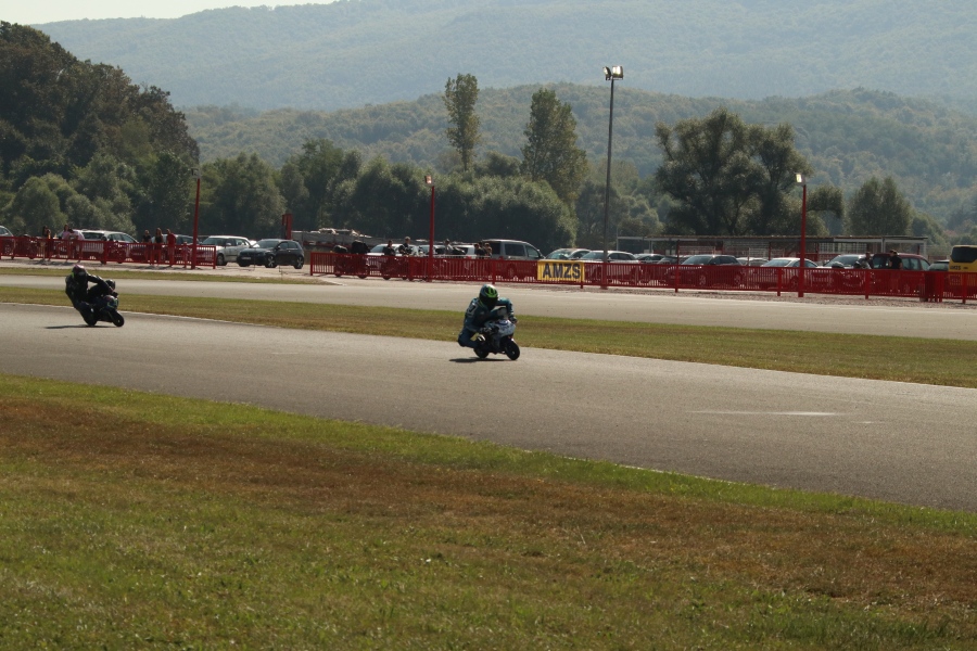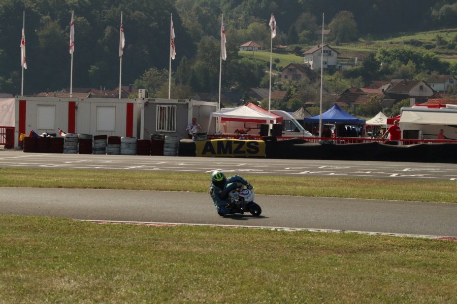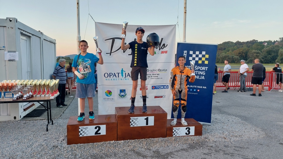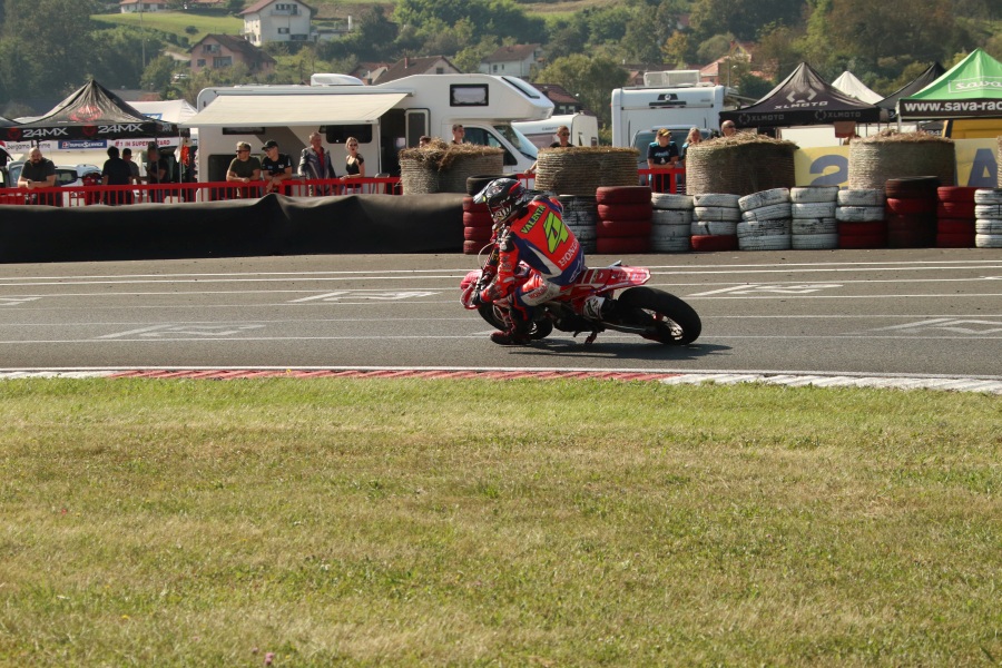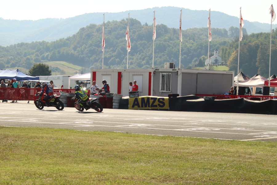 Bolj kot gre sezona h koncu, hitrejši so dirkači v razredu supermoto. V vlogi favorita je na Hrvaško prišel Andraž Osenk Drčar (AMD Orjaki), ki je zmagal na Vranskem. Prva vožnja se je končala po njegovih željah, tekmece pa je z brezhibnimi sekanji ovinkov »deklasiral«, drugouvrščeni Etien Kantar Božič (ŠD Nenaten) je za njim zaostal za 18 sekund. Osenk Drčar je bil izjemno razpoložen in delovalo je, da ga nihče ne bo mogel ustaviti. Na koncu si je stvari otežil kar sam, potem ko je drugo vožnjo slabo štartal in se moral iz ozadja prebijati v ospredje. Prišel je vse na zadnje kolo 15-letnega dirkača iz Lucije, toda v enem izmed ovinkov je bil predolg, nesrečno padel in pri tem poškodoval posodo za zavorno tekočino. V trenutku je skupna zmaga izpuhtela kot milni mehurček, saj je zaradi tehnične okvare moral predčasno končati dirko. Kantar Božič je imel do konca druge vožnje konkurenta manj, kljub temu pa ni z lahkoto prišel do prvega mesta. Po seriji prehitevanj in borbi za proste centimetre na stezi je bil bolj uspešen kot Antonio Kossi (Hrvaška) in tako s sposojenim motorjem, njegov se je pokvaril na Vranskem, prišel do skupne zmage in vnovičnega prevzema vodstva v državnem prvenstvu.