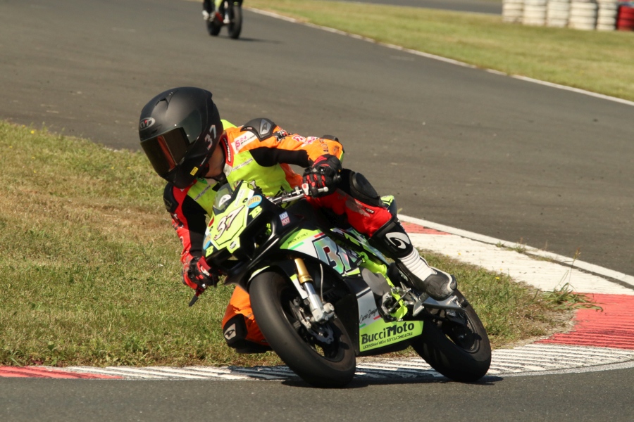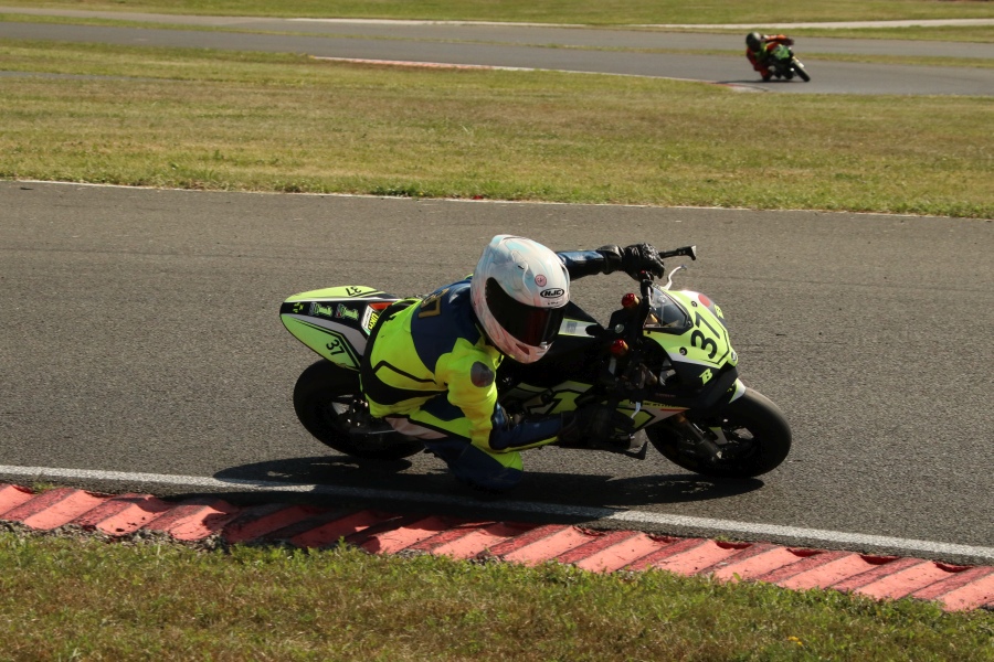 Tadej Maver Guštin (AMD Divača) se je vrnil na vrh razreda minimoto Open, potem ko sta odlično in pogumno predstavo prikazala s Taijem Komelom (GAS Vrtejba). Do dirke v Novem Marofu vodilni dirkač prvenstva je sicer na sobotnem treningu padel in obe dirki odpeljal poškodovan. Zdravniški pregled je razkril natrgane vezi v desnem zapestju. Kljub bolečinam je stisnil zobe in si z dvema drugima mestoma privozil pomembne prvenstvene točke.