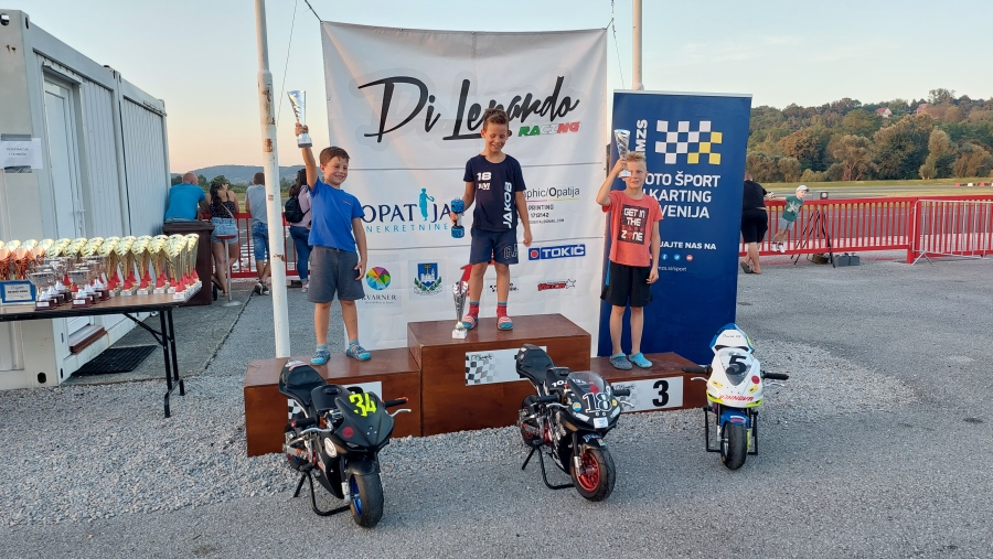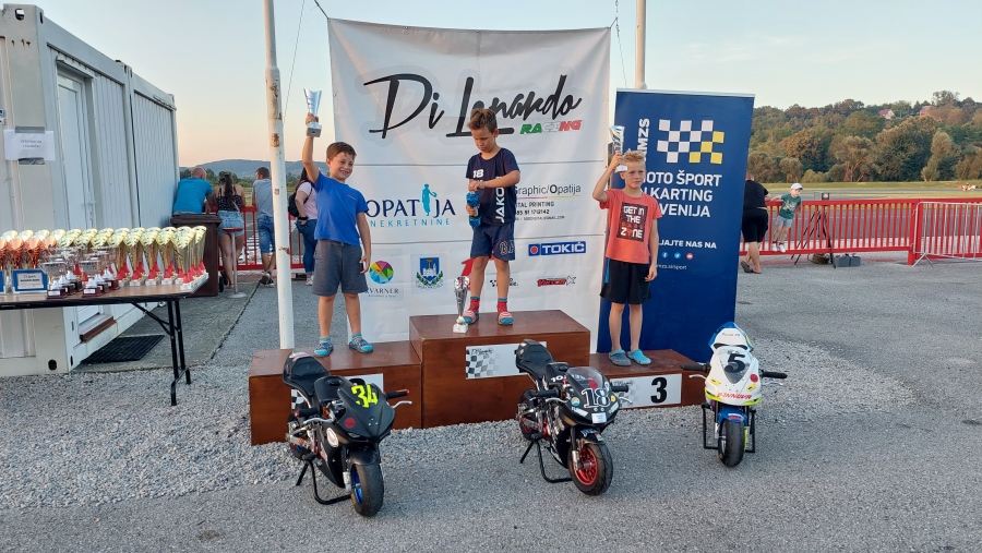 Jakob Štiftar (GAS Vrtejba) je skupni zmagovalec dirke minimoto10 v Novem Marofu. V prvi vožnji je sedemletni Domžalčan naredil posel in pol, saj se je hitro odlepil od tekmecev in v cilj prišel z 28 sekundami prednosti pred Liamom Ostrožnikom (GAS Vrtejba), Žan Rozman (AMD Orjaki) pa je ciljno črto prečkal kot tretji. Ko so se mladeniči vnovič postavili v štartno vrsto, je bilo vnovič zelo napeto, s tesnimi obračuni pa je v drugi vožnji najbolje opravil zmagovalec zadnjih dveh dirk David Štilec (AMD Orjaki), toda sanje o tretji zaporedni skupni zmagi so splavale po vodi že v prvi vožnji, saj je bil skromen peti. Štiftar je obe preizkušnji odpeljal odlično in po drugem mestu na popoldanski dirki postal skupni zmagovalec.