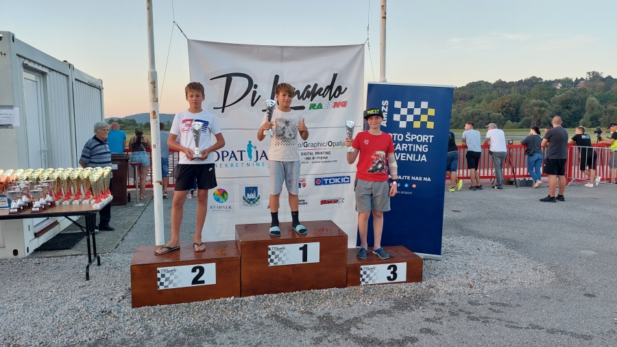 Tian Krševan (GAS Vrtejba) se je podpisal pod novo skupno zmago v razredu miniGP 10. Tokrat je imel na stezi Rauš več dela z bratom Enejem kot pa tekmeci, saj sta se večino časa prehitevala. Mladi dirkač iz Ajdovščine je bil vnovič boljši od Nejca Petriča (GAS Vrtejba), ki je po padcu in lažji poškodbi na Vranskem stisnil zobe in prišel do skupno drugega mesta.