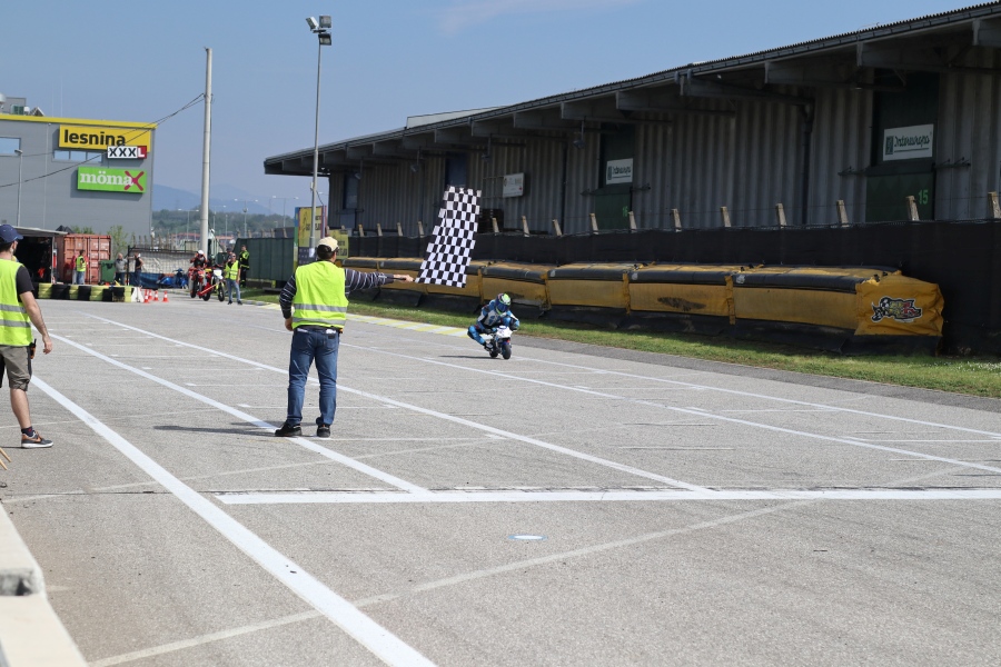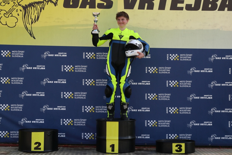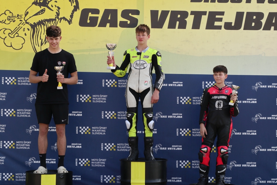 je po zanj vseeno razburljivi dirki, ki jo je odpeljal s tekmeci v močnejši konkurenci miniGP 12 povedal Kovačič, ki je vseeno zasluženo prejel pokal za zmagovalca.