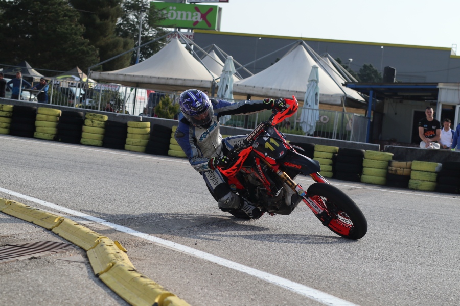 V najmočnejši kategoriji supermoto smo videli skoraj rekordno število udeležencev, ki so navdušili občinstvo ob progi. Skupaj jih je bilo na dirki kar 22, kar je pomenilo, da je bila na stezi nepopisna gneča, ki pa je bila za spremembo od tiste turistične v Portorožu, dobrodošla. Več dirkačev pomeni, da je zanimanje za supermoto v porastu, hkrati pa je bila dirkaška akcija v vsakem trenutku zagotovljena. V središču pozornosti sta bila po odličnih kvalifikacijah Andraž Osenk Drčar (AMD Orjaki) in povratnik na dirkaškem asfaltu Luka Pleško (Društvo GAS Vrtejba). V vodilni skupini jima je družbo delal še David Božič (Hrvaška).