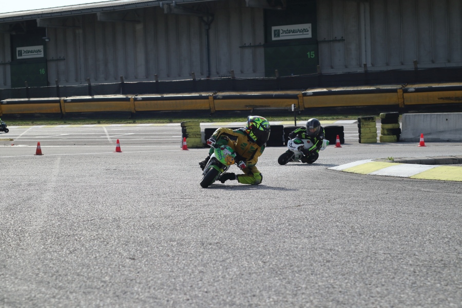 Obe vožnji v konkurenci miniGP 12 sta bili dih jemajoči, predvsem zaradi nepričakovanih padcev in dirkaških incidentov. Najbolj dramatičen trenutek se je pripetil v prvi vožnji, ko sta se za zmago borila Tristan Rupelli (MC Nannelli 69) in Tian Krševan (Društvo GAS Vrtejba). Oba sta bila izjemno hitra in odločena, da ciljno črto prečkata prva, toda le nekaj krogov pred koncem dirke je pri izstopu iz prvega ovinka odneslo zadnje kolo Rupelliju, po zdrsu pa je čez njegov motor spektakularno skočil mlajši od bratov Krševan. Oba sta dirko končala na tleh, brez sape in prvenstvenih točk. Njuno smolo, ki je bila klasičen dirkaški incident, je izkoristil Nejc Petrič (Društvo GAS Vrtejba), ki je prišel v cilj kot prvi.