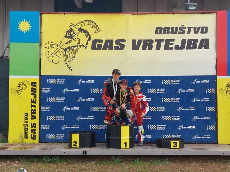 je bil vesel novopečeni dobitnik kristalne čelade, priznanja, ki ga dobi dirkač s petimi osvojenimi naslovi državnega prvaka Slovenije pod okriljem AMZS. Skupno drugo mesto v seštevku razreda miniGP12 je osvojil osmoljenec sezone Nejc Petrič, tretje pa Rupelli.