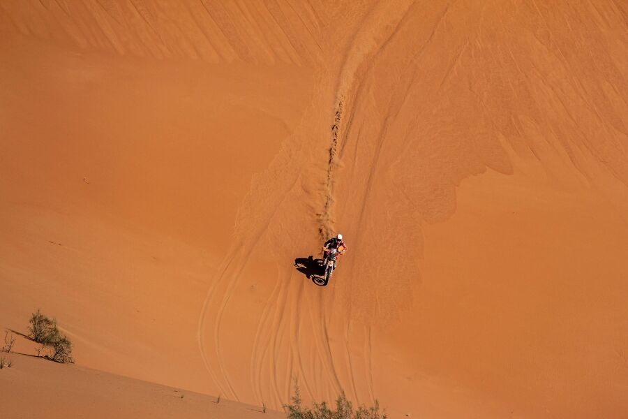 Bila je hitra in tudi nevarna etapa. Približno po 200 kilometrih, malce pred dolivanjem goriva, sem padel, saj je bilo zelo veliko prahu. Ko sem želel prehiteti enega od tekmovalcev, mi je zdrsnilo kolo in priletel sem v skale. Sreča, da sem imel "airbag", sicer bi se lahko poslovil od relija. Motor, hvala bogu, ni poškodovan in vožnjo sem nadaljeval le z ukrivljenim krmilom,