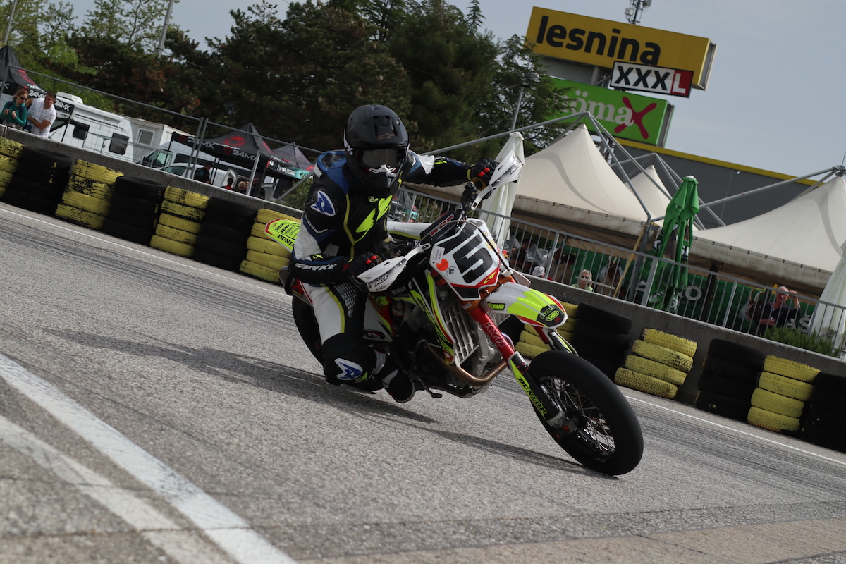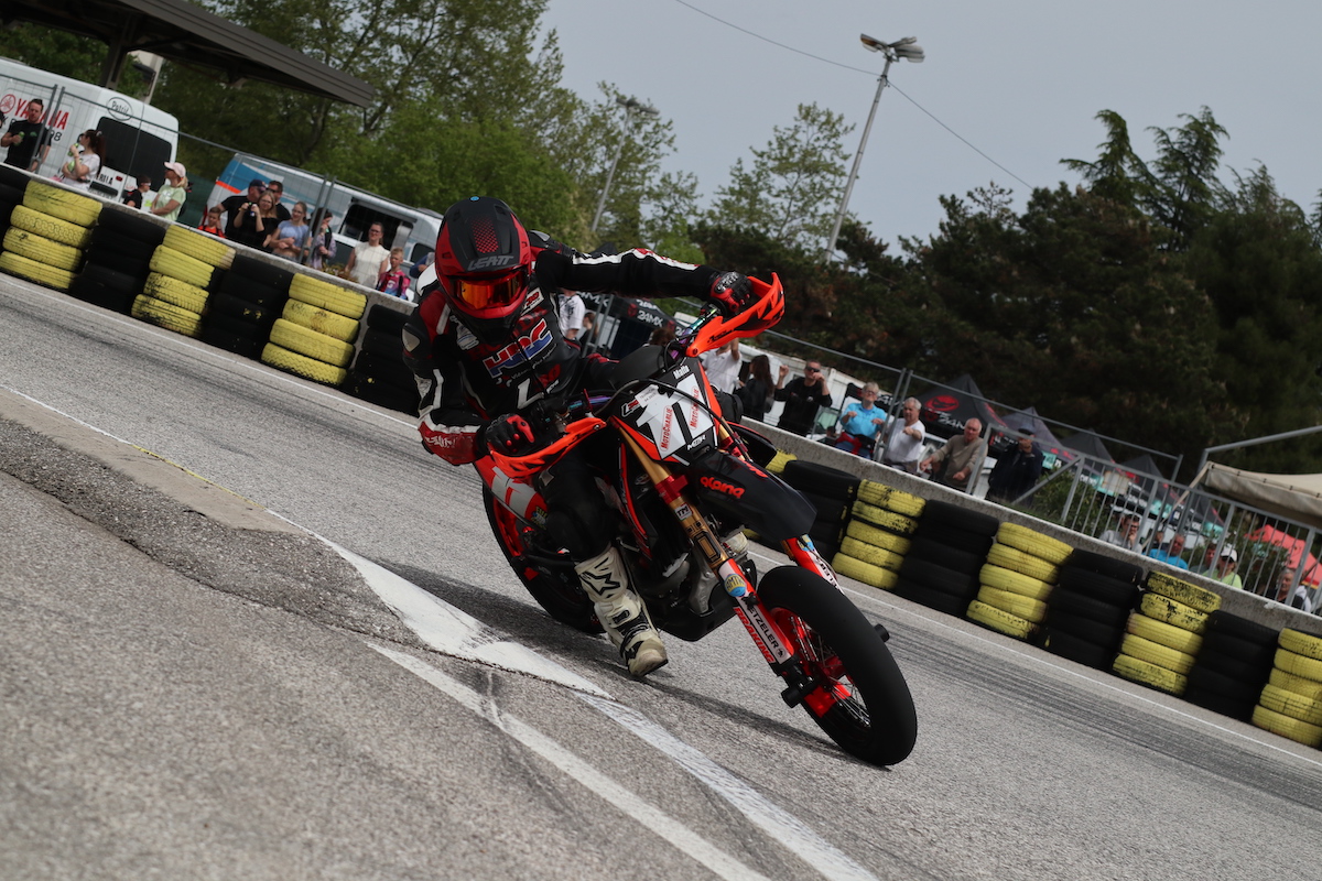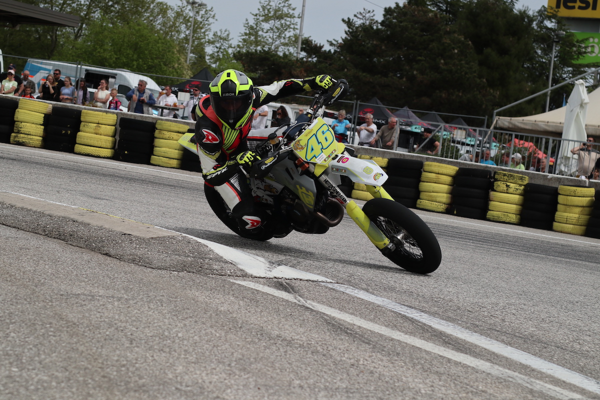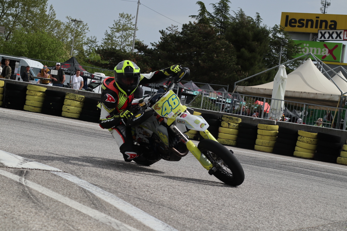 Med vozniki supermoto motorjev je svojo hitrost znova dokazal Nejo Habjan (GAS Vrtejba), ki je uspešno začel branjenje lanske lovorike državnega prvaka. Dirkač domačega kluba, ki je organiziralo uvodno dirko sezone, je bil nepopustljiv. Iz kroga v krog je nabiral prednost, kljub poskusom pa ga Andraž Osenk Drčar (AMTK Koper) ni uspel ujeti, kaj šele prehiteti. Član AMTK Koper se je za skupno drugo mesto pomeril s klubskim kolegom Matijo Benčičem (AMTK Koper) in ta dvoboj dobil potem, ko je slednji v drugi vožnji grdo padel. Kljub temu je vseeno prišel do tretjega mesta, kar pa je bilo po obeh vožnjah premalo za skupno drugo mesto, ki je pripadlo Osenk Drčarju.