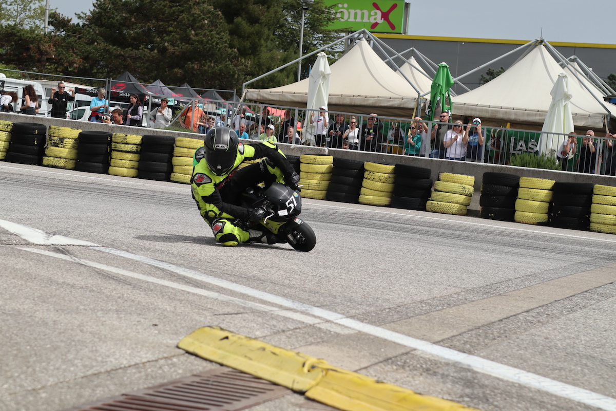 V letošnji sezoni bomo v razredu minigp 10 spremljali napete obračune za zmago in zmagovalne stopničke, saj je v primerjavi z lani v konkurenci več dirkačev. Tokrat je največ znanja in spretnosti prikazal Matija Kodarin (GAS Vrtejba), ki je bil najboljši v obeh vožnjah in v skupnem seštevku osvojil maksimalnih 50 prvenstvenih točk. Maroko Cvetko (ŠD Oktani) je z odlično drugo vožnjo, v kateri je bil drugi, dobil neposredni obračun z Urhom Kovačičem (AMD Domžale) za skupno drugo mesto.