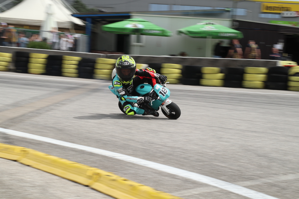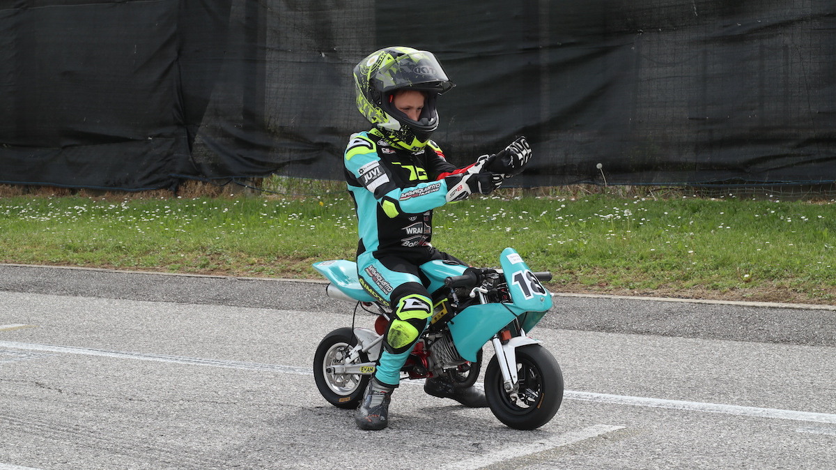 V zadnji kategoriji dirkačev, ki so zapeljali na stezo, sta sicer, če smo slovnično pravilni - zapeljala le dva voznika. Nejc Petrič (GAS Vrtejba) in Tian Krševan (GAS Vrtejba) sta uprizorila vožnji vredni vnovičnega ogleda. Prvo dirko je dobil Petrič, v drugi pa se je mlajši od bratov Krševan zbudil in ciljno črto prečkal prvi. To je pomenilo, da sta imela enako število prvenstvenih točk, toda ker ima zmaga v drugi vožnji večjo težo, je skupna zmaga romala v roke Tiana Krševana – branilca lovorike državnega prvaka v razredu minigp 12.