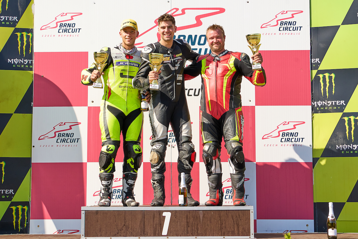 Enej Logar (AMD Domžale) je imel v Brnu dvojni dirkaški program, saj je nastopil v razredih superbike in supersport 600. V slednjem je dobil kvalifikacije potem, ko je za zgolj za sekundo in štiri desetinke ugnal Etiena Kantarja Božiča (MD Depala vas). Tretji kvalifikacijski čas pa je postavil Benjamin Bele (2n'Race). Logarju se je nato dobro izšlo tudi na dirki. Ker je dobro štartal, je vseskozi nadzoroval prednost pred Kantarjem Božičem, ki se je moral na Moravskem tokrat zadovoljiti z drugim mestom. Na tretjega pa se je v cilj pripeljal Bele.