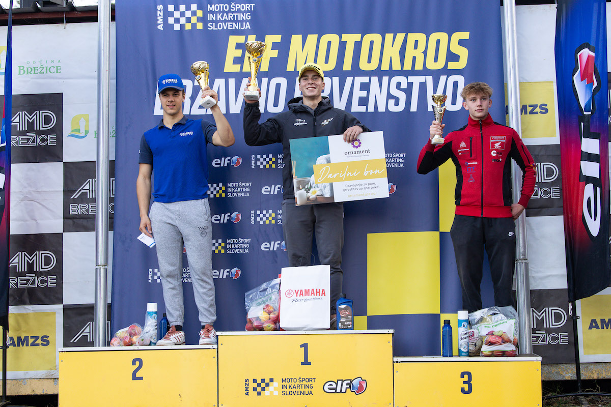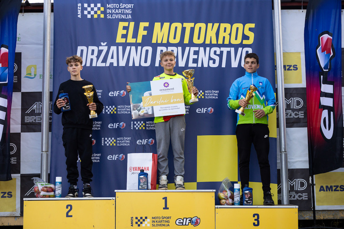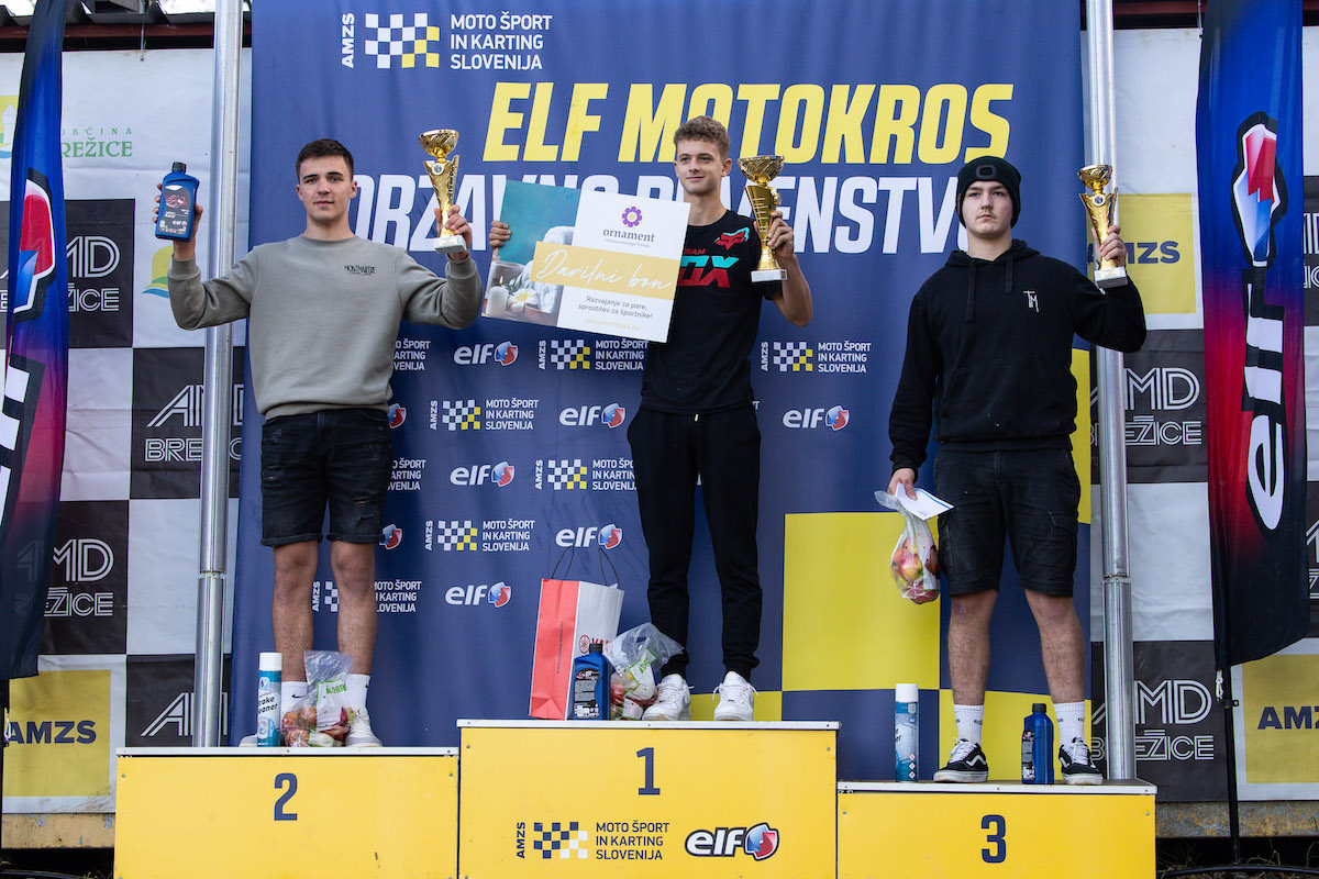 Matic Žibek (ŠD MX Akademija Sašo Kragelj), David Dorčić (Hrvaška) in Matic Maček (AMD Mačkon) so trije mladi vozniki, ki so krojili vrh dirke v razredu MX 65. V prvi vožnji je največ pokazal in največ iztržil Žibek, drugi je bil Maček, tretji pa je ciljno črto prečkal Dorčić. V drugi vožnji je hrvašli up motokrosa svoji vožnji na progi nekaj dodal in na koncu cilj prevozil prvi. Sledila sta mu Žibek na drugem in Maček na tretjem mestu. Žibek je po seštevku točk današnje dirke stal na najvišji stopnici. Na zmagovalnem odru sta se mu pridružila še Dorčić in Maček. Dorčič je prevzel mesto vodilnega v skupnem seštevku razreda MX 65 pred zadnjo dirko, ki bo brez dvoma zelo zanimiva.