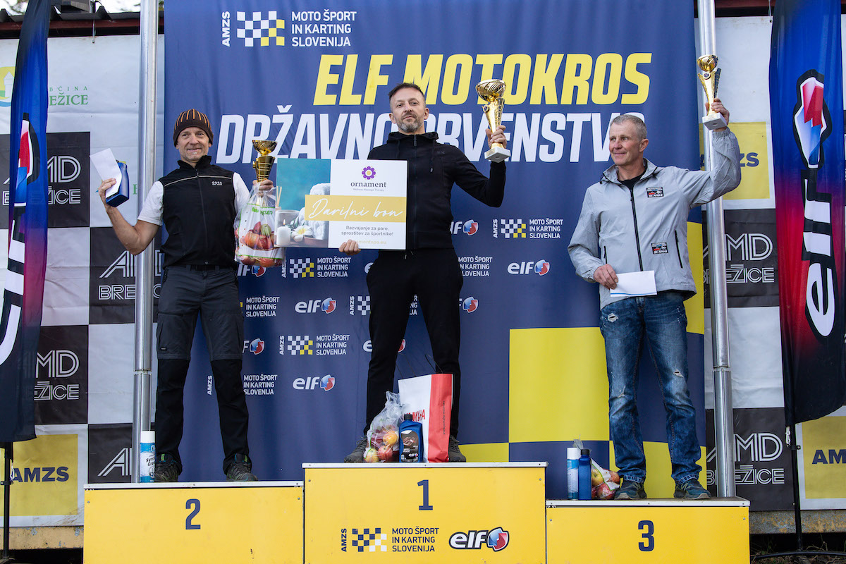 Pri starejših veteranih nad 50 let je po štartu povedel Tomaž Jankovič (AMD Slovenske Konjice), vendar ga je kmalu prehitel Leon Ferš (AMD Mačkon), ki prvo mesto zadržal do konca prve vožnje. Avstrijski tekmovalec Gerog Kainz je vožnjo končal na tretjem mestu. Povsem enak je bil tudi razplet druge vožnje razreda MX Vet 50, kar je pomenilo tudi enak razpored na zmagovalnem odru. Po današnji dirki Ferš ostaja na prvem mestu skupnega točkovanja državnega prvenstva, sledita pa mu Jankovič in Kainz.