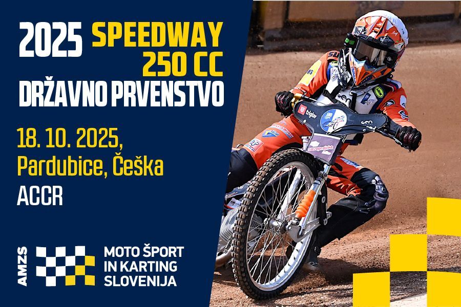 V soboto, 18. oktobra, bo jasno tudi, kdo bo postal državni prvak v speedwayu na 250 kubičnih motorjih, na katerih tekmujejo vozniki od 12 do 16 let. Dirka bo potekala v Pardubicah na Češkem, kjer so letos avgusta že vozili za državno prvenstvo. Takrat je domači voznik Karel Pruša presenetil Svena Cerjaka (AMD Krško), ki se je medtem že zelo dobro uveljavil na dveh dirkah na 500 kubičnem motorju. Svetovni podprvak serije SGP3 bo zagotovo skušal kariero na 250 kubičnem motociklu končati v stilu in z zmago. Dolžnik z avgustovske tekme je tudi Gregor Zorko (AMD Krško), saj jo je zaradi padca predčasno končal. Tudi Zorko je že pošteno z obema rokama zagrabil močnejši motocikel in bo želel sezono ter slovo od 250 kubičnega motorja zanesljivo končati z odmevnim rezultatom. Zanimivo bo videti tudi, kako se bo znašla Tia Zorko (AMD Krško), ki je v Pardubicah prvič v karieri tekmovala za točke državnega prvenstva. Prva slovenska voznica speedwaya ima za seboj dober sklop treningov v preteklih tednih, kar bi se lahko na dirki še kako poznalo ter ji znova prineslo vzpodbudo za nadaljnje trdo treniranje.