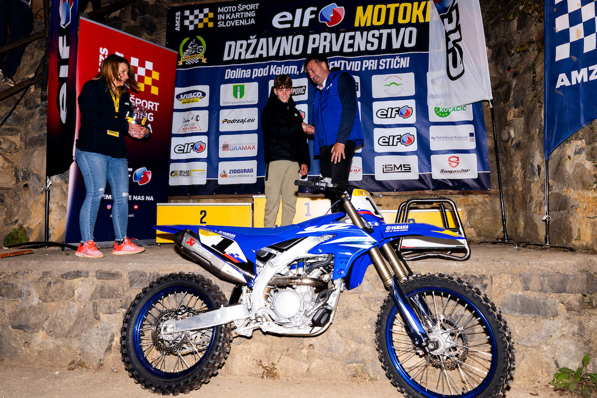 Tim Repnik je tudi srečni izžrebanec motorja yamaha YZ250F, za katerega so se potegovali vozniki, ki so odpeljali osem dirk Elf državnega prvenstva Slovenije v motokrosu. Podjetje Akrapovič pa je podarilo stojalo za motor iz titana. Srečni dobitnik po žrebu je postal Alen Gajser.