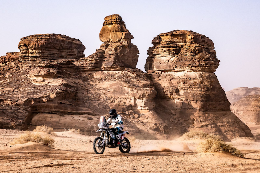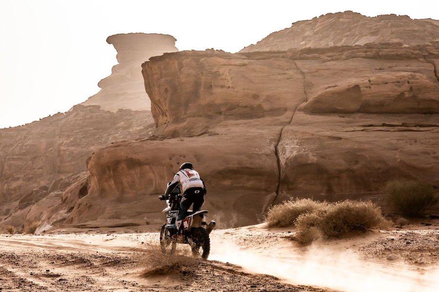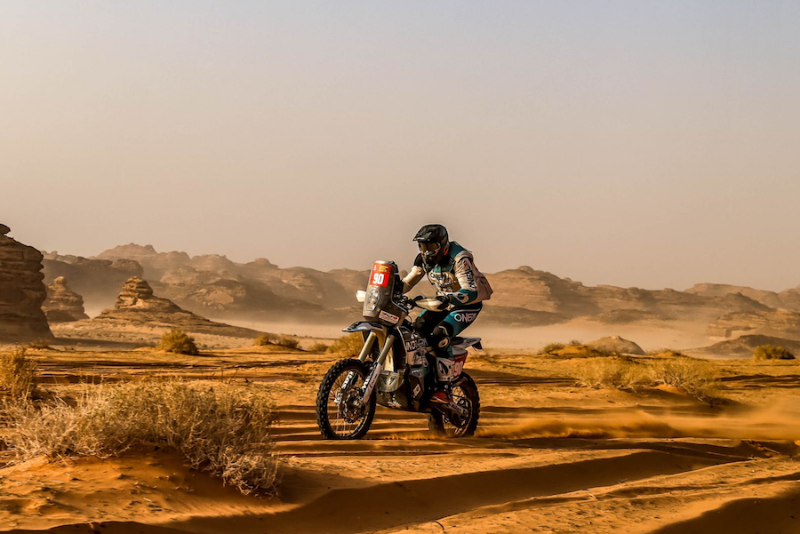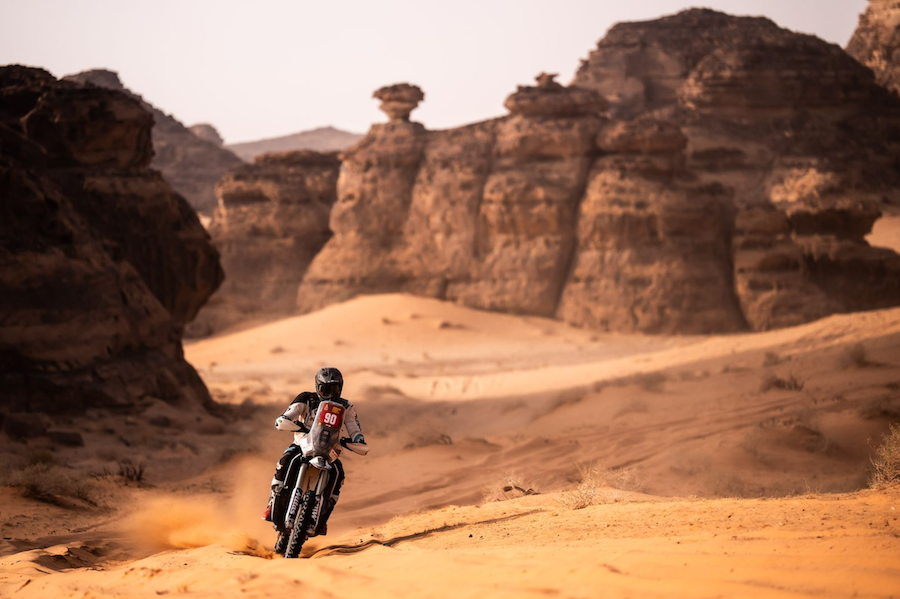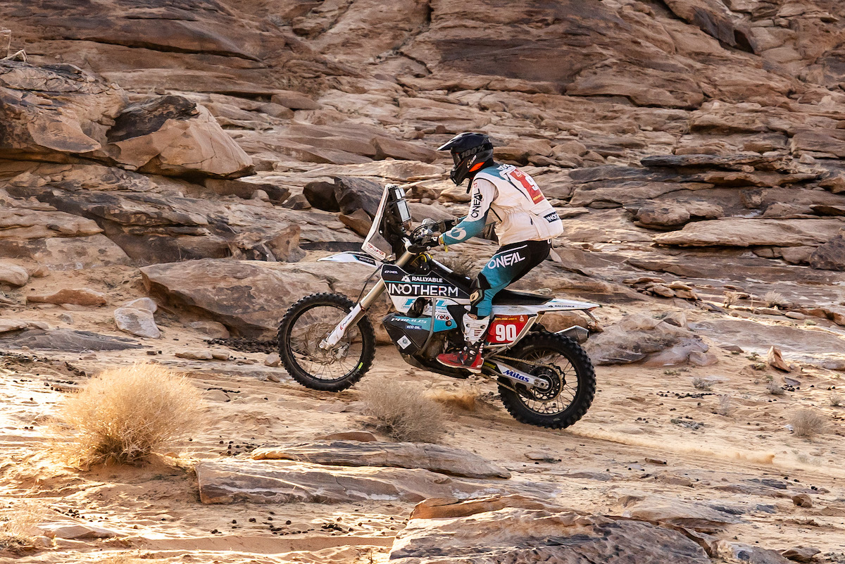 Med udeleženci, ki tekmujejo na motociklih, sta tudi dva slovenska voznika z licencama AMZS. Predvsem Toni Mulec se je se v prvem tednu izognil vsem zapletom ter pastem, ki jih ni bilo malo in so ga čakale na prologu ter zahtevnih šestih etapah, Simon Marčič pa se je soočil z zoprnimi problemi, ki so mu pošteno otežili vožnje. Zdaj bosta imela zelo pomemben in edini dan počitka na dirki, v katerem bosta lahko v Rijadu nabrala moči za drugi del relija, ki bo izjemno zahteven in se bo 17. januarja končal v Yanbuju, od koder so se udeleženci sicer tudi pognali na pot. V preteklih dneh je Mulec navdušil z izvrstnimi vožnjami in se je v četrti etapi v razredu rally 2 v skupnem seštevku prebil celo do izjemnega 2. mesta. Četrta in peta etapa sta bili dejansko maratonska preizkušnja, v kateri so bili tekmovalci prepuščeni sami sebi ter med eno in drugo tudi tovarniški vozniki niso smeli imeti nobene pomoči mehanikov. Mulec se je zelo dobro znašel, četudi je imel tudi nekaj navigacijskih težav, ki so mu malce pobrale ritem, pa tudi čas. Petkovo etapo, ki je bila dolga kar 920 kilometrov, je končal na 8. mestu v absolutni konkurenci, v kateri se nahaja skupno na 11. mestu. V razredu rally 2 pa Mulec zaseda skupno celo sijajno 2. mesto.