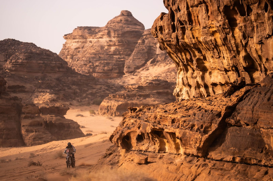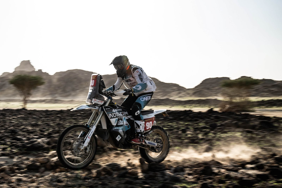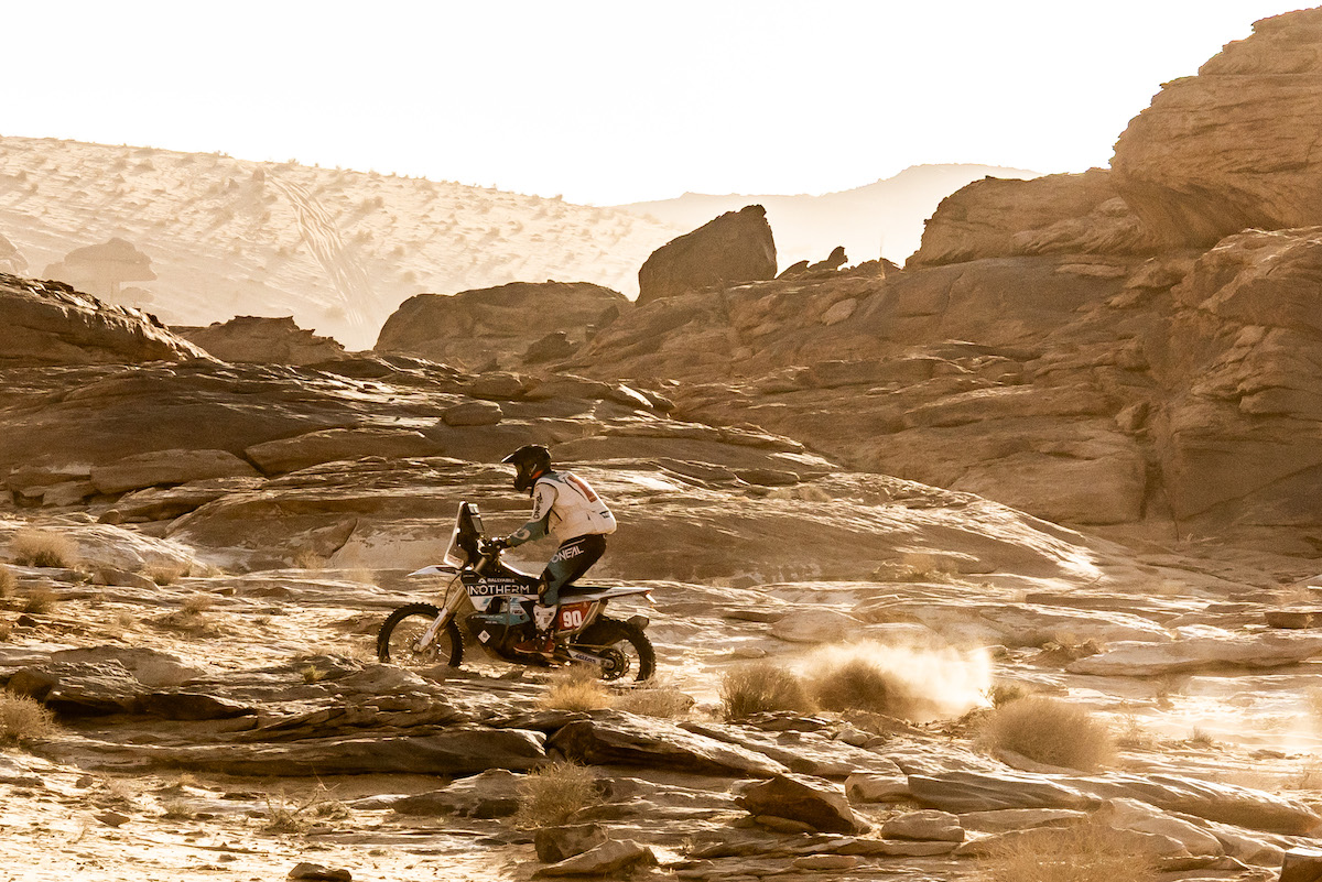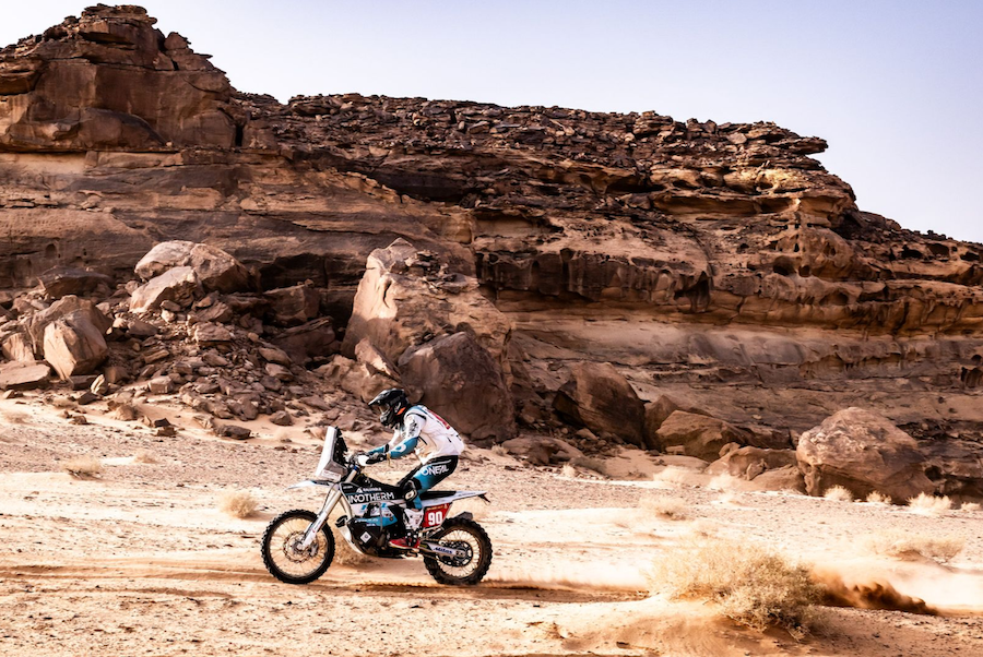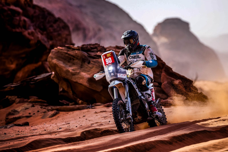Med udeleženci, ki tekmujejo na motociklih, sta tudi dva slovenska voznika z licencama AMZS. Predvsem Toni Mulec se je se v prvem tednu izognil vsem zapletom ter pastem, ki jih ni bilo malo in so ga čakale na prologu ter zahtevnih šestih etapah, Simon Marčič pa se je soočil z zoprnimi problemi, ki so mu pošteno otežili vožnje. Zdaj bosta imela zelo pomemben in edini dan počitka na dirki, v katerem bosta lahko v Rijadu nabrala moči za drugi del relija, ki bo izjemno zahteven in se bo 17. januarja končal v Yanbuju, od koder so se udeleženci sicer tudi pognali na pot. V preteklih dneh je Mulec navdušil z izvrstnimi vožnjami in se je v četrti etapi v razredu rally 2 v skupnem seštevku prebil celo do izjemnega 2. mesta. Četrta in peta etapa sta bili dejansko maratonska preizkušnja, v kateri so bili tekmovalci prepuščeni sami sebi ter med eno in drugo tudi tovarniški vozniki niso smeli imeti nobene pomoči mehanikov. Mulec se je zelo dobro znašel, četudi je imel tudi nekaj navigacijskih težav, ki so mu malce pobrale ritem, pa tudi čas. Petkovo etapo, ki je bila dolga kar 920 kilometrov, je končal na 8. mestu v absolutni konkurenci, v kateri se nahaja skupno na 11. mestu. V razredu rally 2 pa Mulec zaseda skupno celo sijajno 2. mesto.