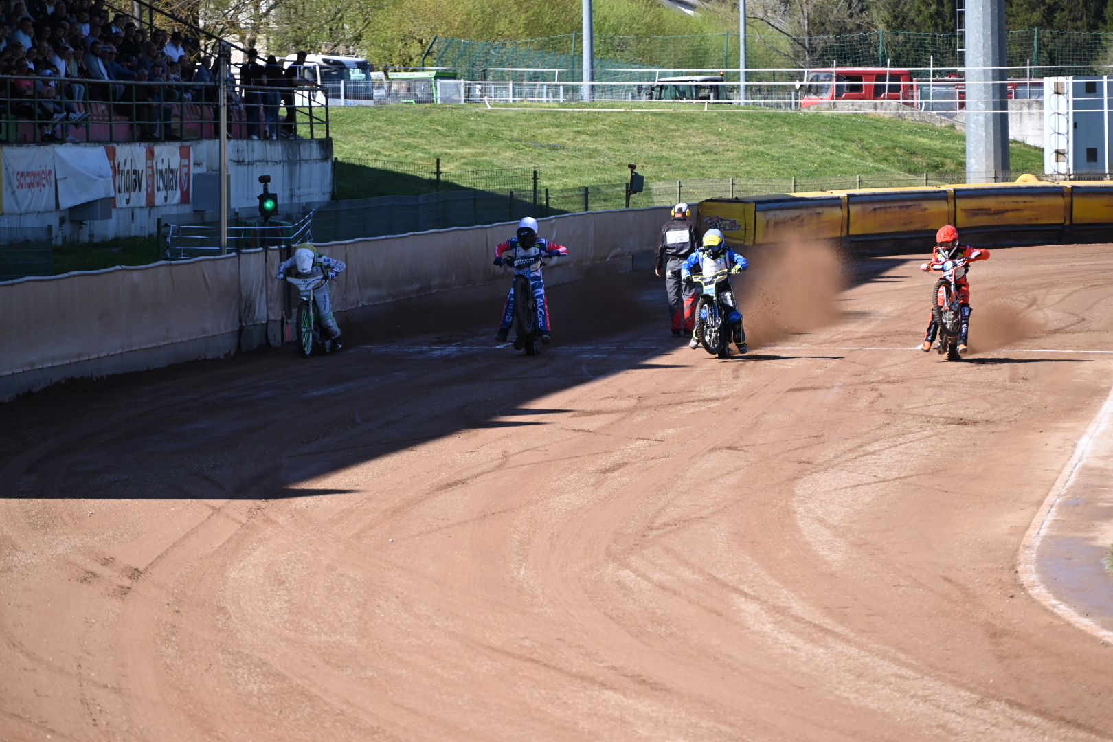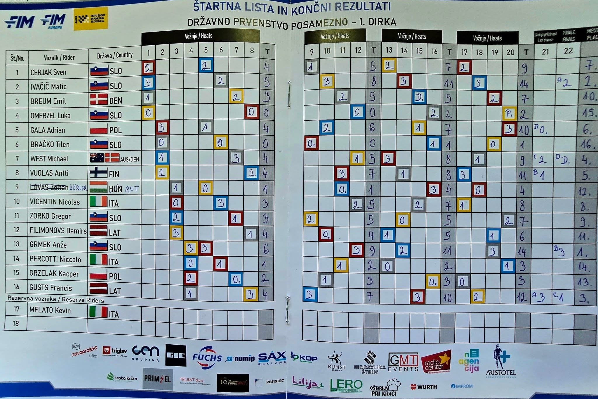 Mladi Tilen Bračko (AMTK Ljubljana) in Luka Omerzel (AMD Krško) v prvih nastopih nista uspela priti do točk, medtem ko je Gregor Zorko (AMD Krško) v tretji vožnji pokazal zelo borbeno predstavo. Premoč je moral priznati le Latvijcu Damirsu Filimonovsu in je zasedel drugo mesto. Prvi del dirke je z uspešnim nastopom sklenil Anže Grmek (AMTK Ljubljana). Mladinski prvak je po slabšem štartu pokazal drzna prehitevanja in se s tretje pozicije prebil mimo Poljaka Kacperja Grzelaka ter celo mimo rekorderja krške steze, Latvijca Francisa Gustsa.