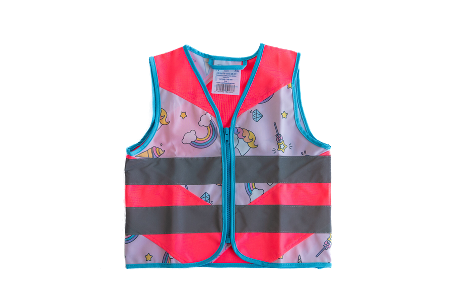 Paketek vključuje vse, kar vaš otrok potrebuje za varnost in večjo vidnost na vsakem izletu, sprehodu, pri teku ali na kolesu: