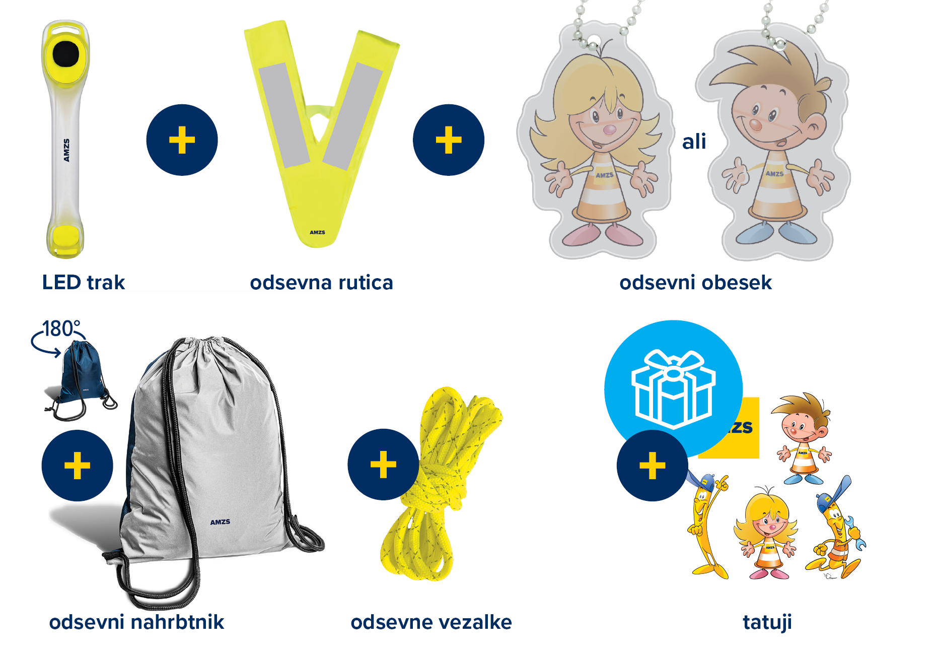 Odsevni izdelki so na voljo v AMZS centrih, lahko pa jih naročite tudi prek spleta.