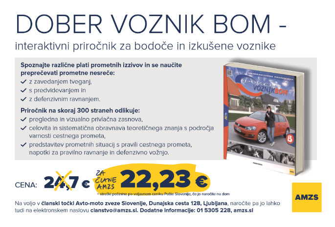 Na voljo je v AMZS članski točki na Dunajski cesti 128 v Ljubljani in v AMZS Šoli vožnje.