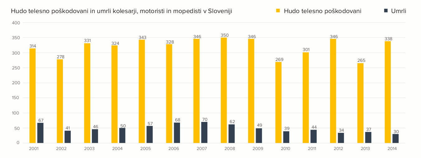 Kolesarji in motoristi sodijo med bolj ogrožene skupine udelžencev v cestnem prometu, saj je je enosledno vozilo precej težje opaziti. Čeprav kolo in motorno kolo uporablja precej manj uporabnikov, kot se jih vozi z osebnimi avtomobili, podatki kažejo, da je delež najhujših prometnih nesreč pri tej skupini udeležencev v prometu relativno visok.