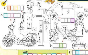 Vožnja s kolesom je hitra in okolju prijazna, z električnim kolesom pa je še lažja. Najdi in obkroži 12 razlik med slikama, ki prikazujeta vožnjo z navadnim in električnim kolesom.