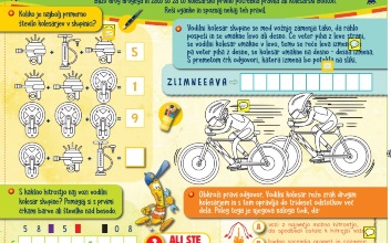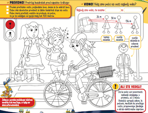 Zakaj cesta ni igrišče? Dobro poglej vse dogodke na slikah, nato premisli in jih oštevilči po pravilnem vrstnem redu. Potem pomagaj še malce raztreseni Anji, ki se je v šolo pripeljala s kolesom. Po koncu pouka namreč ne najde čelade, ki jo je odložila v omari, in jo zdaj potrebuje za vožnjo s kolesom domov.